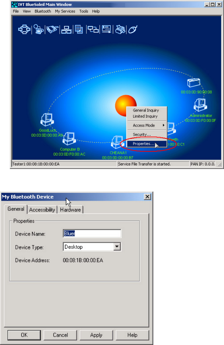 • HovermousetodisplaythelocalBluetoothdevice'snameoraddress(if