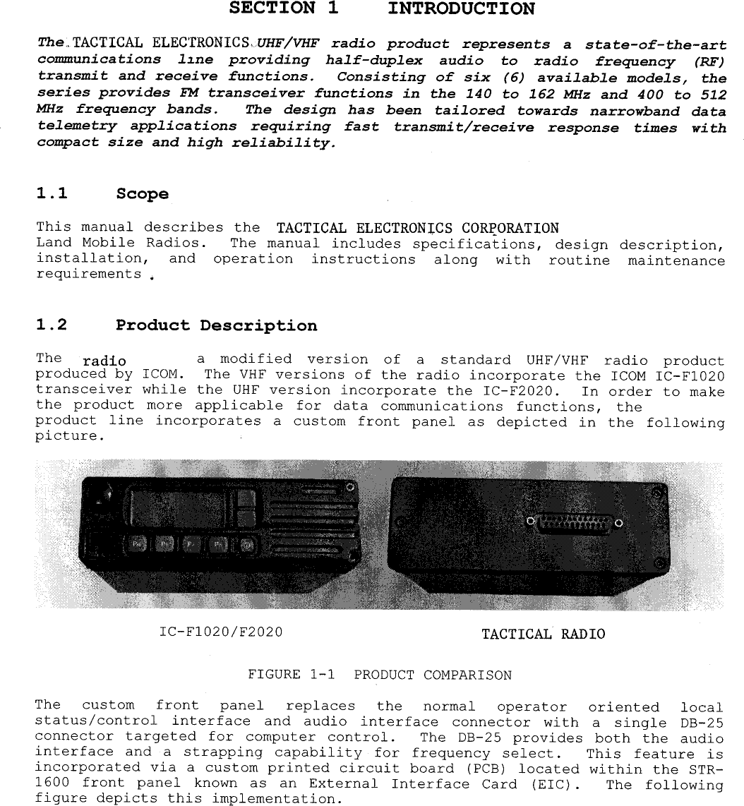 Tactical Electronics IC-F1020WN-2 VHF TRANSMITTER User Manual