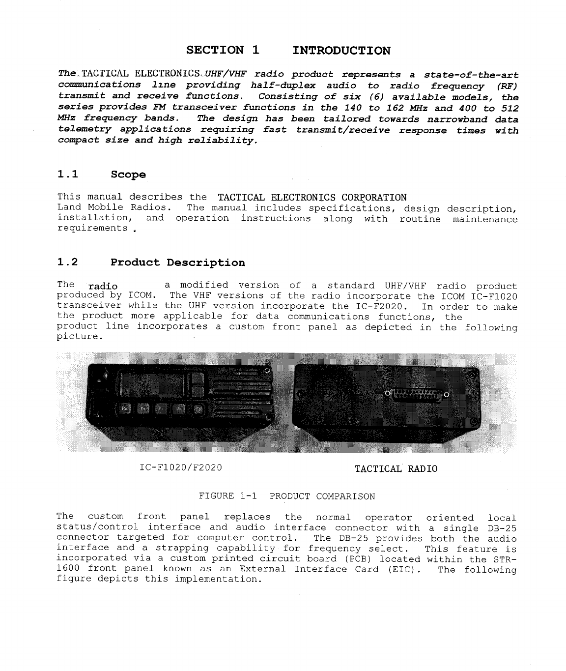 Tactical Electronics IC-F1020WN-2 VHF TRANSMITTER User Manual