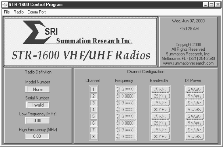 radio with the desired parameters to the PC. Selecting Radio : Radio Settings