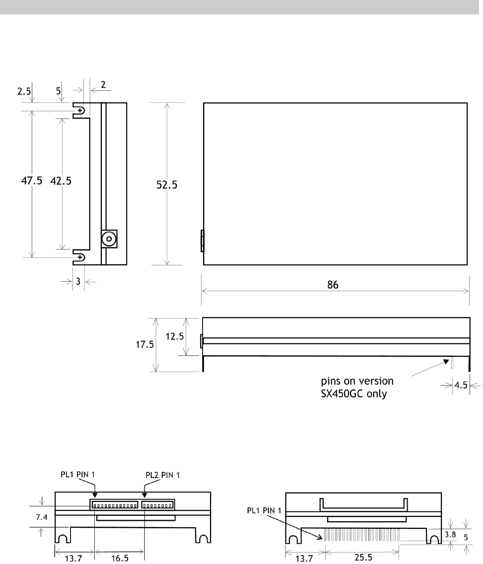 All other connections to the SX450 GC transceiver are made via a 21-way SIL PCB