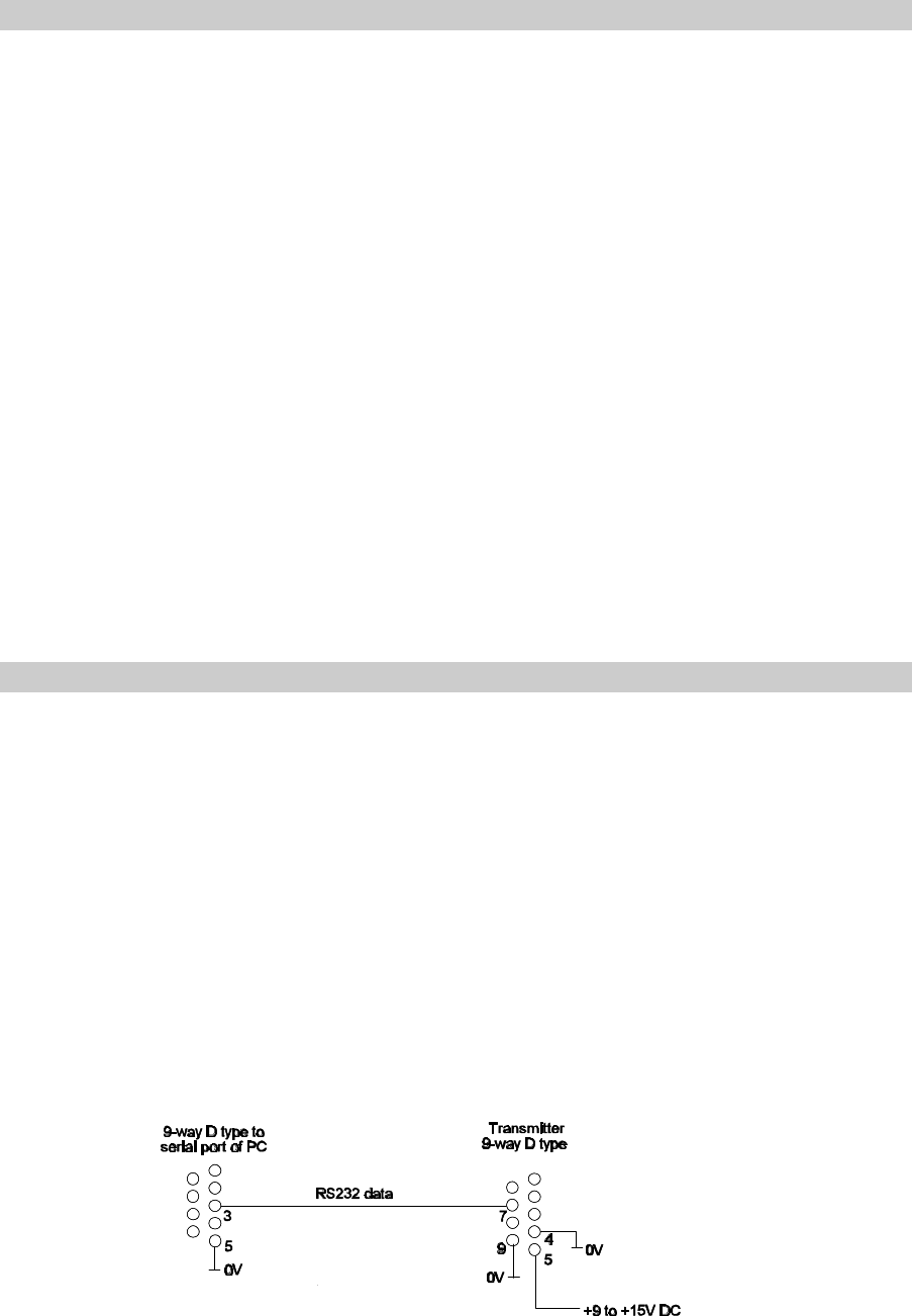 connections to the T400 transceiver are made using a standard 9-way D type connector