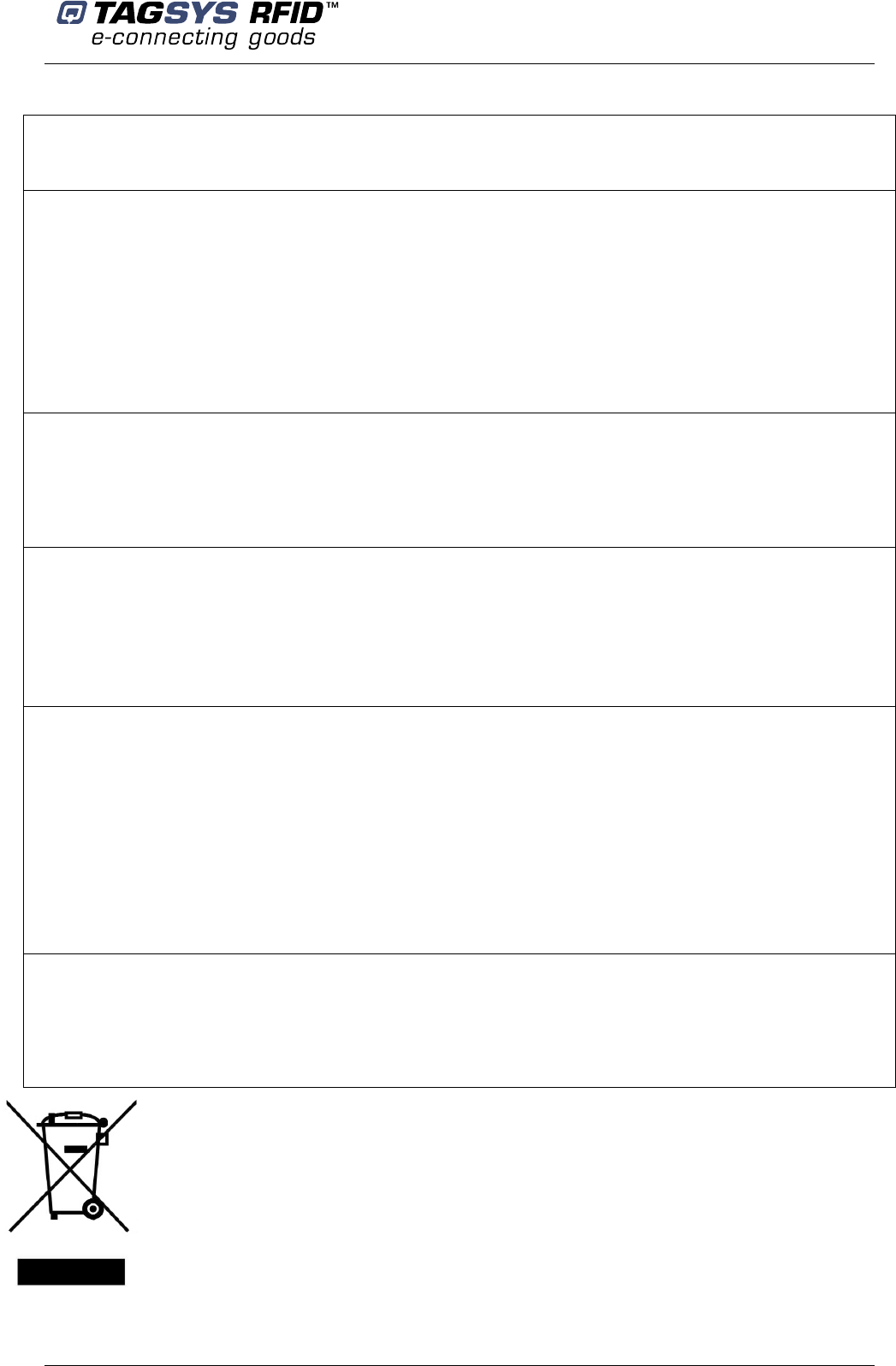 should you find a defect with this product, please notify your TAGSYS Quality Service