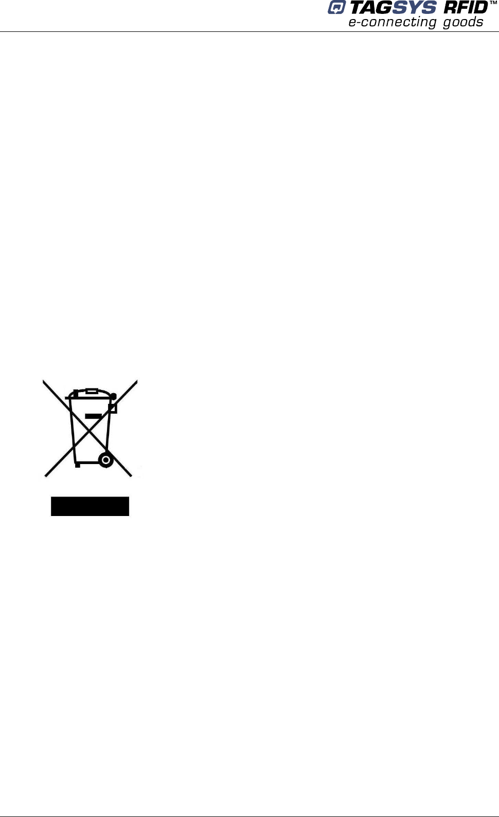 comply with TAGSYS specifications or normal usage