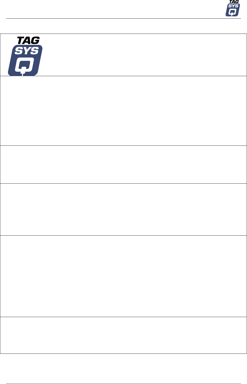 information herein. Furthermore, TAGSYS reserves the right to make any change or improvement in the specifications