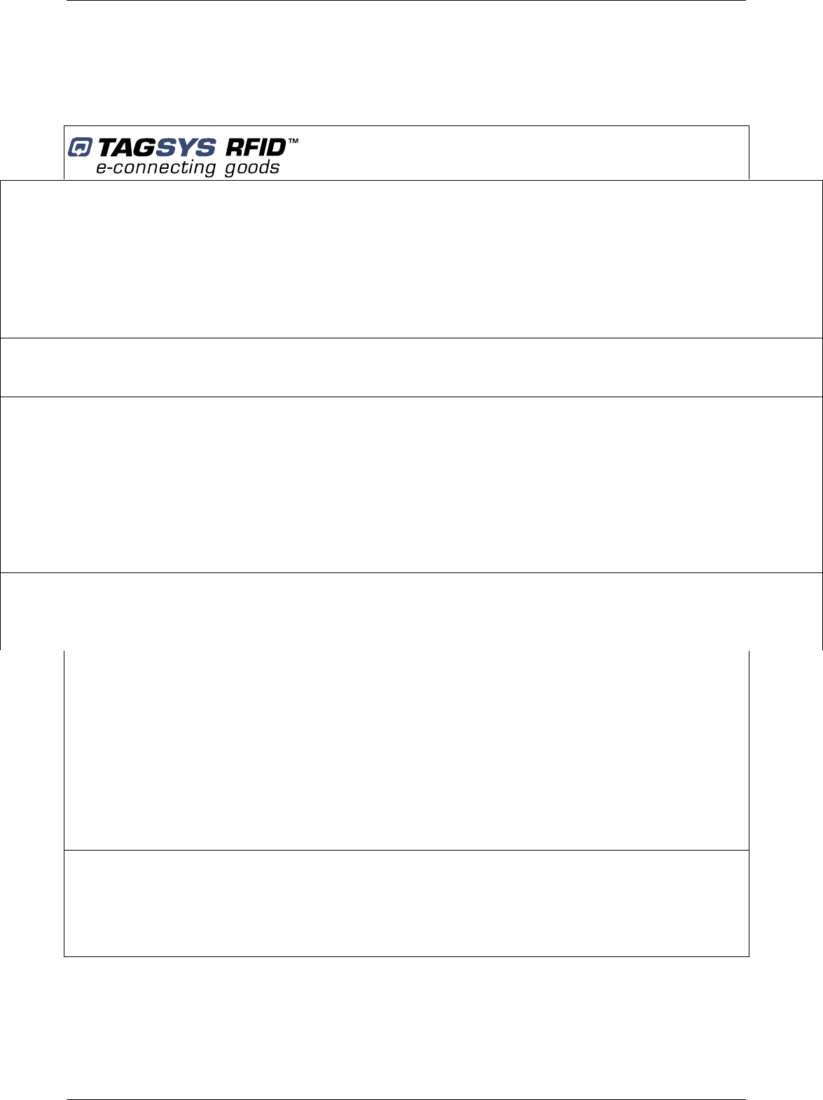 information herein. Furthermore, TAGSYS reserves the right to make any change or improvement in the specifications