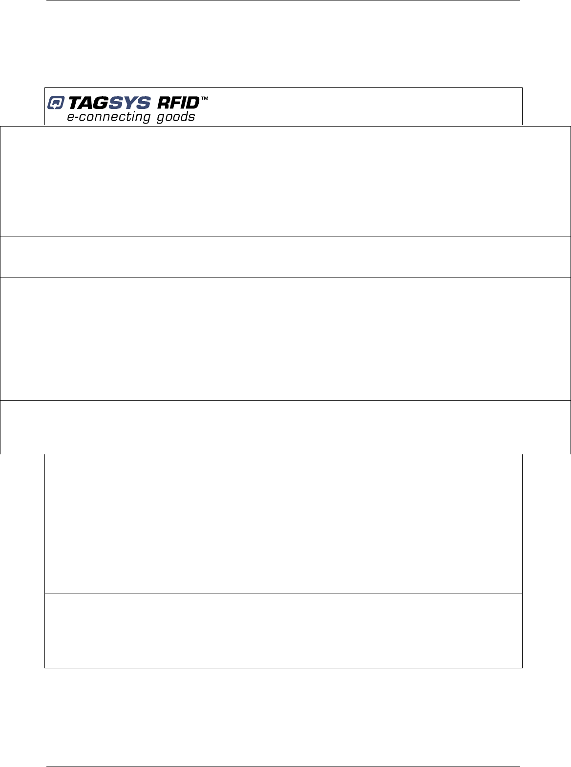 information herein. Furthermore, TAGSYS reserves the right to make any change or improvement in the specifications