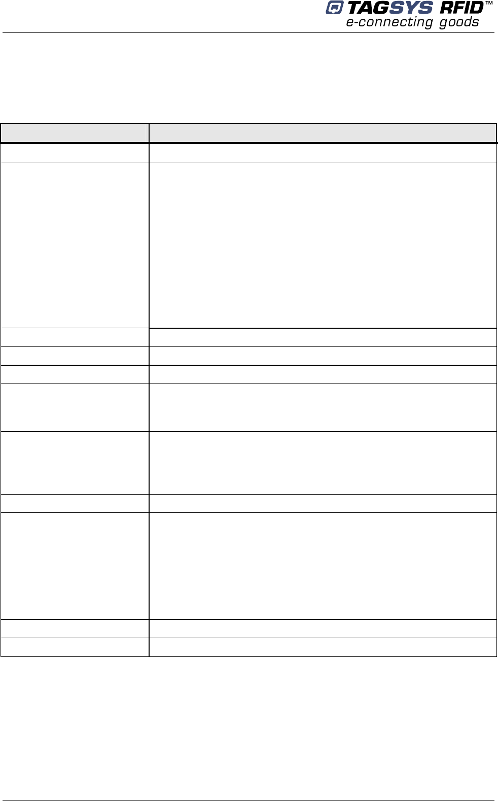 information herein. Furthermore, TAGSYS reserves the right to make any change or improvement in the specifications