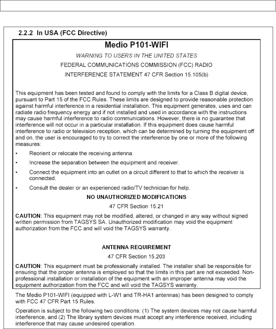 Tagsys MEDIOP101WIFI RFID Tag Reader User Manual FCC Statement