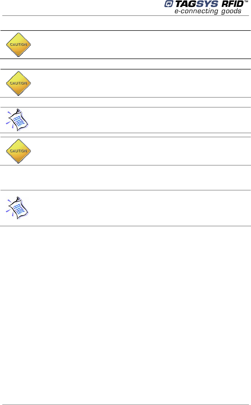 Optimal operation and performance of the Product are obtained by using TAGSYS’ readers, by