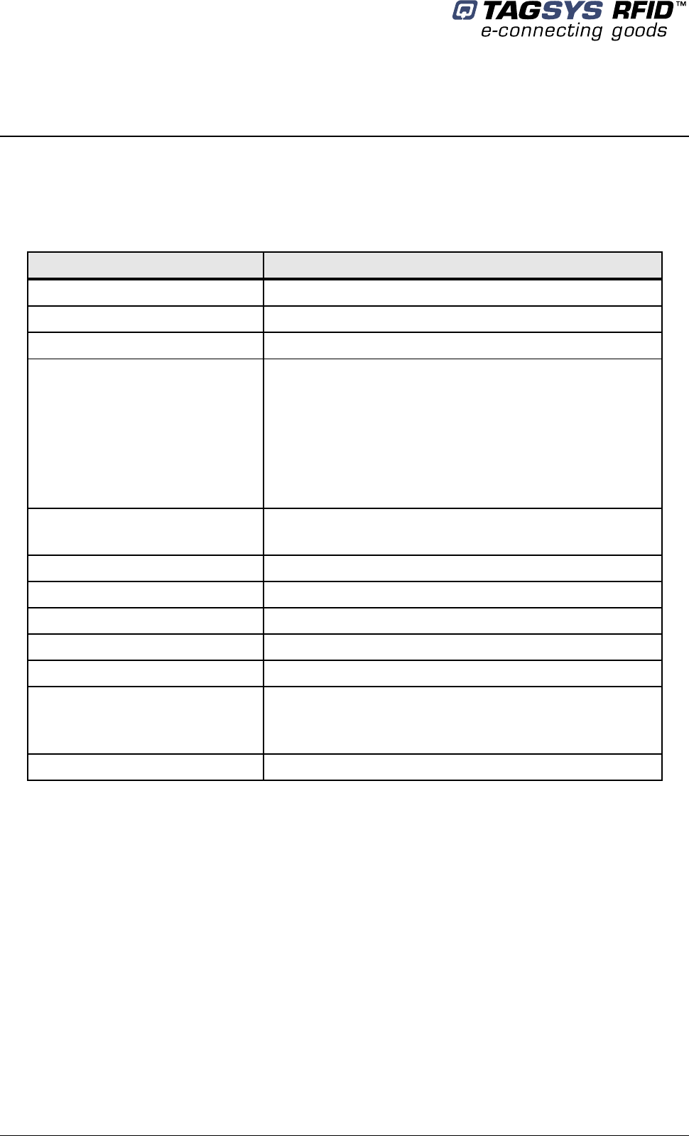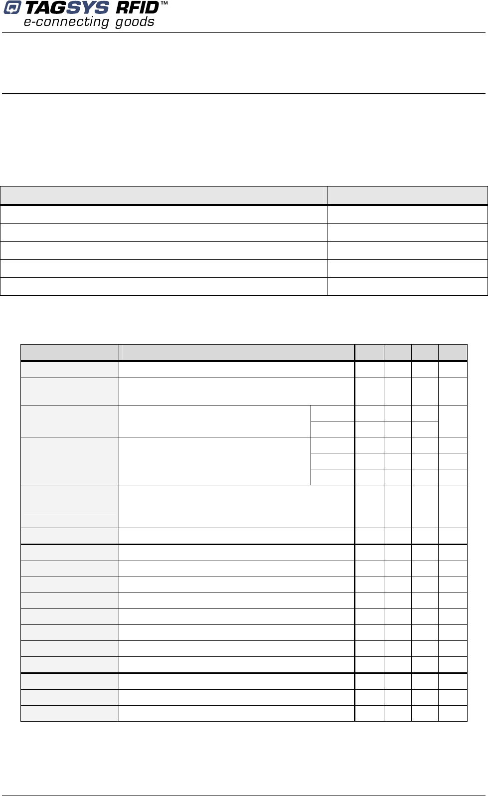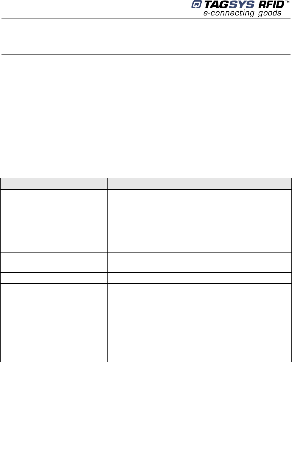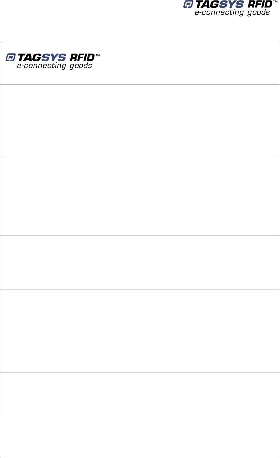 information herein. Furthermore, TAGSYS reserves the right to make any change or improvement in the specifications