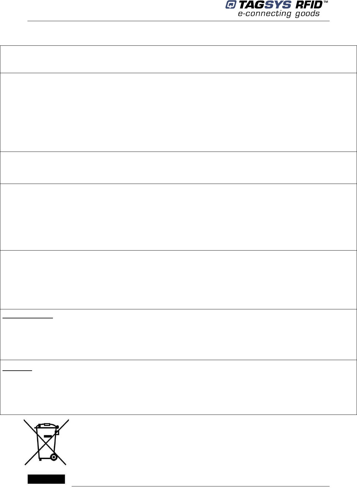 should you find a defect with this product, please notify your TAGSYS Quality Service