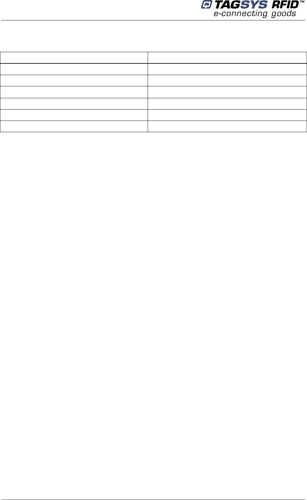 information herein. Furthermore, TAGSYS reserves the right to make any change or improvement in the specifications