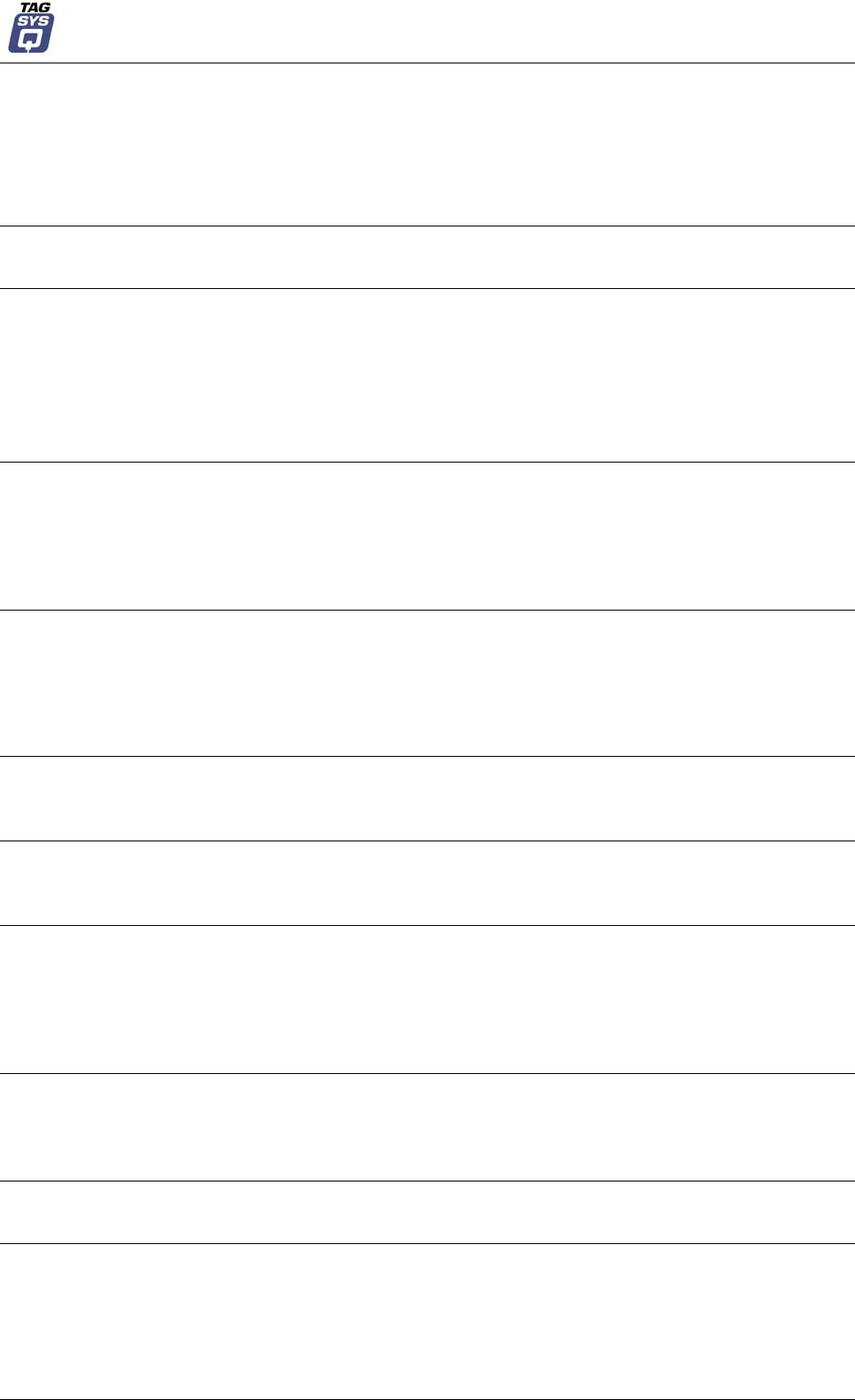 information herein. Furthermore, TAGSYS reserves the right to make any change or improvement in the specifications