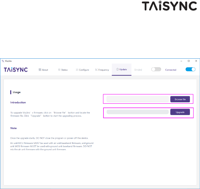 cable and run Taisync PC program to upgrade the firmware of the ground unit to