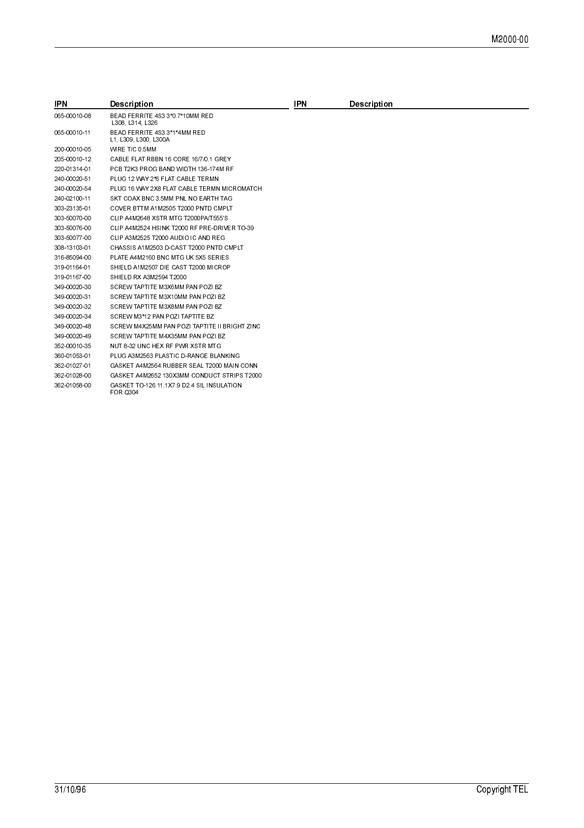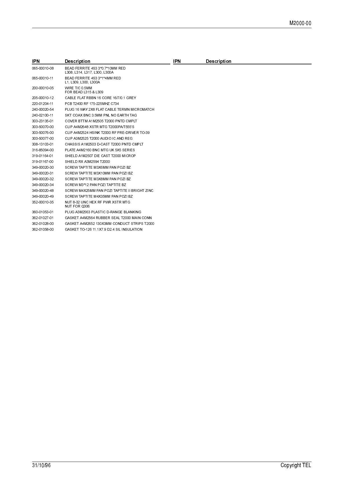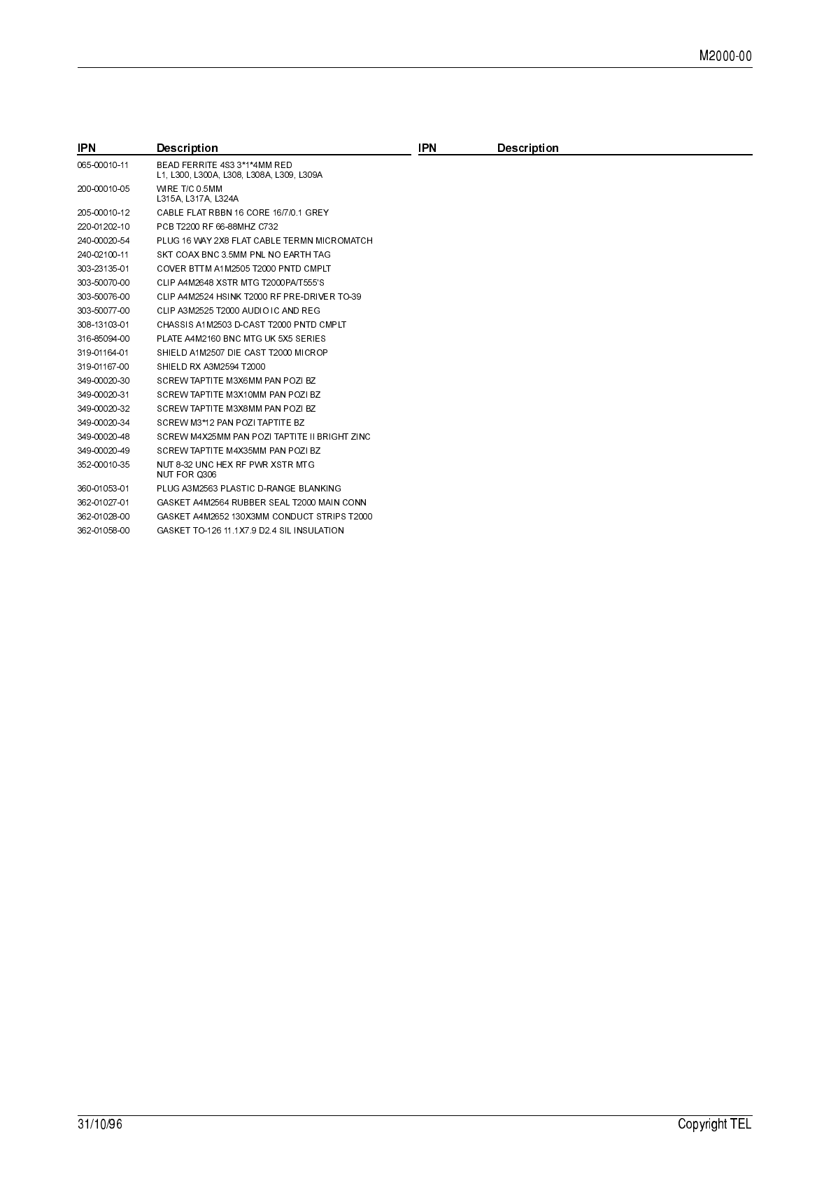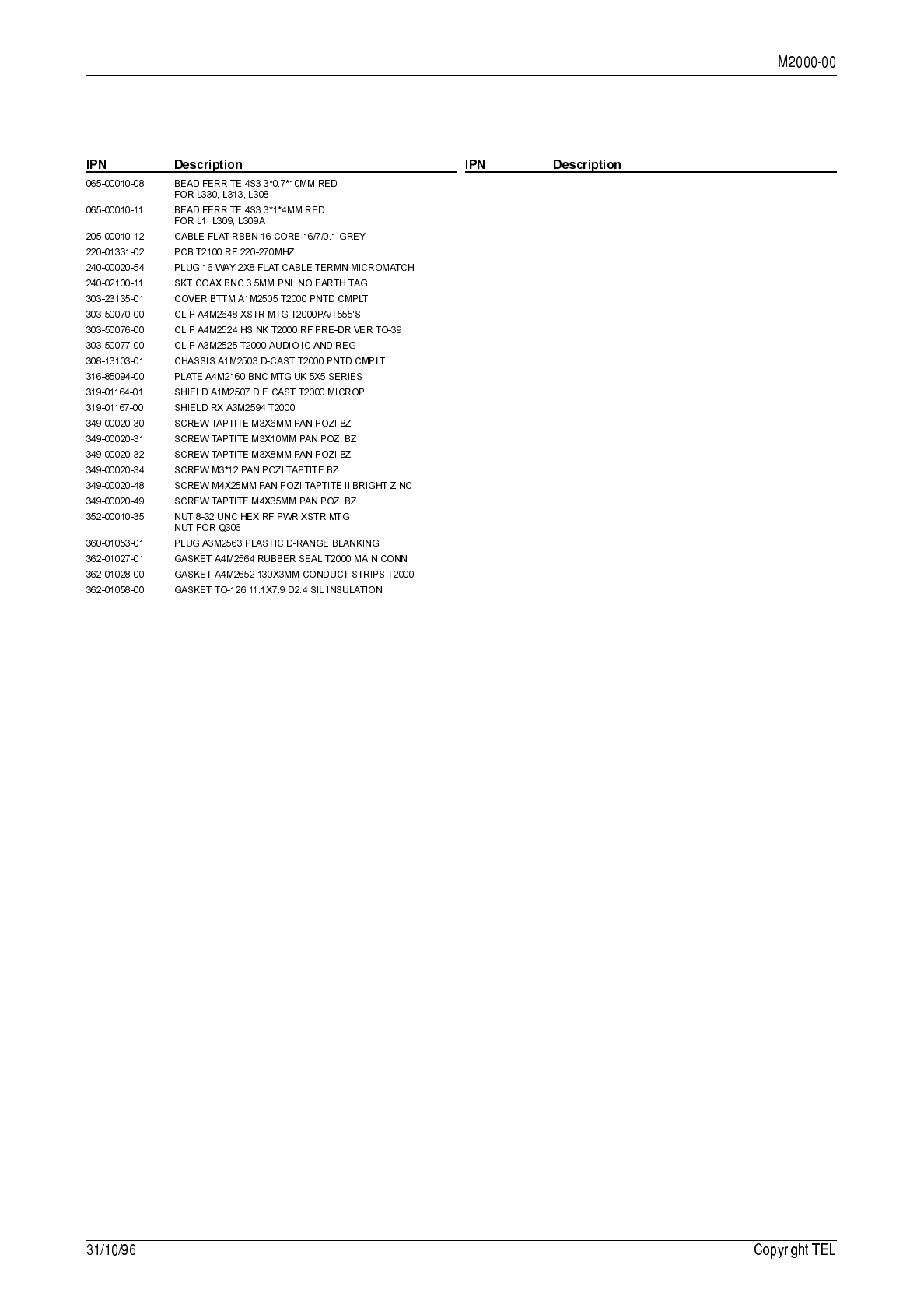 7.3 T2000-300 RF PCB IPN 220-01314-01 7.3.1 136 to 174