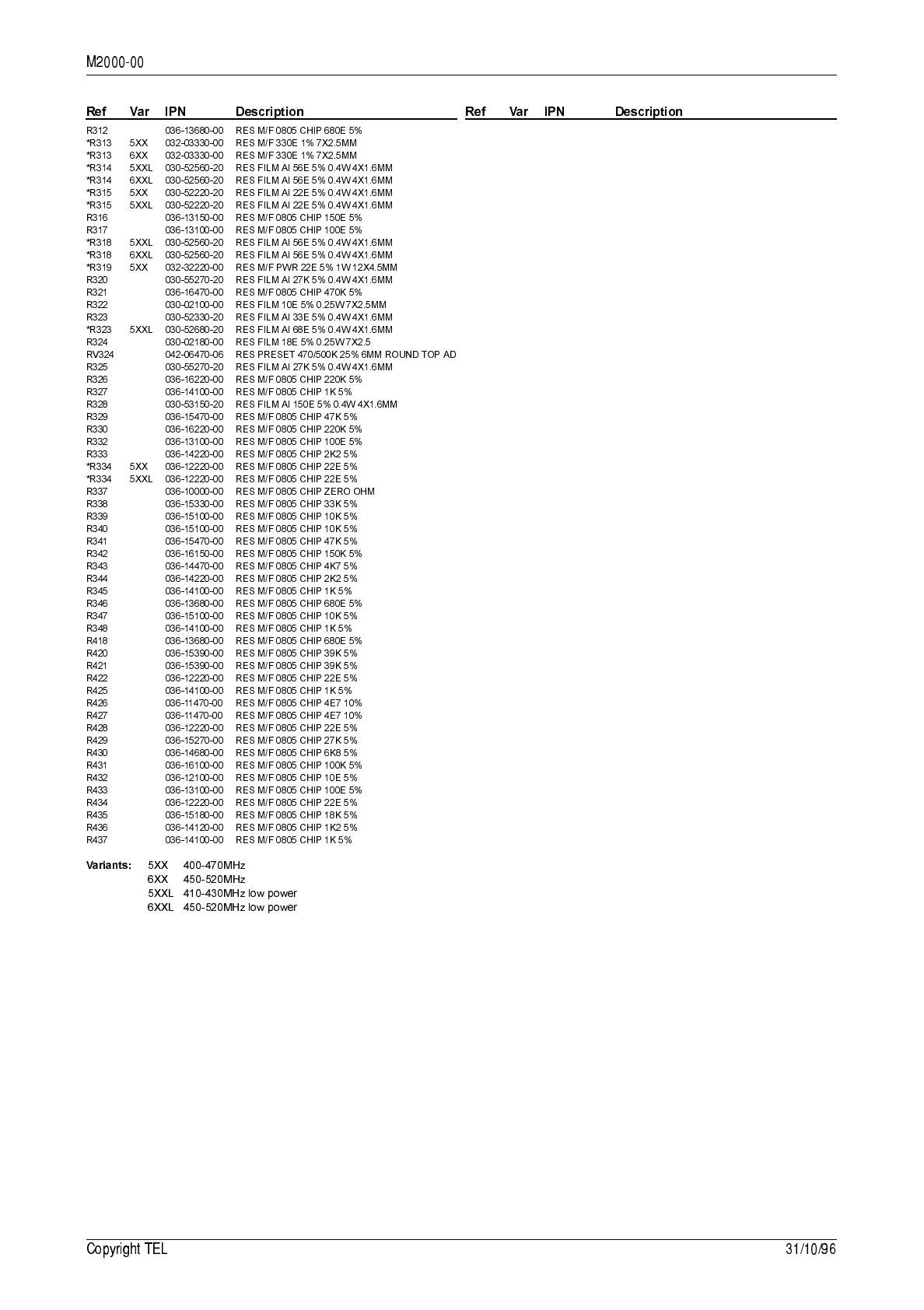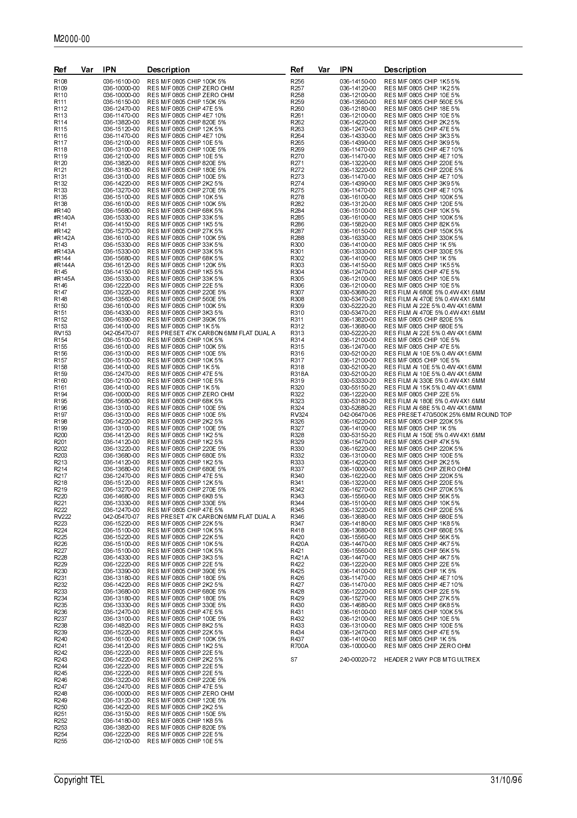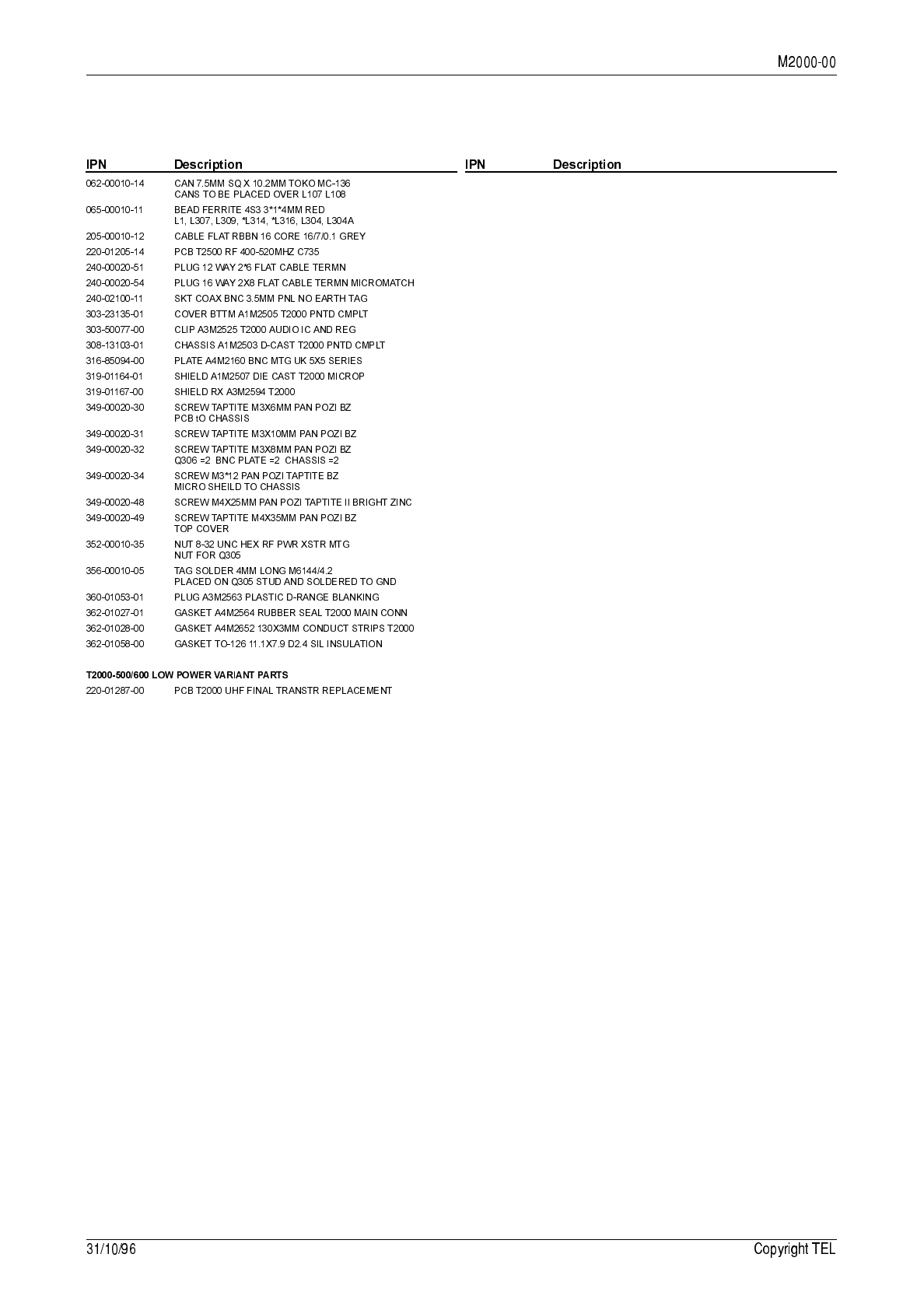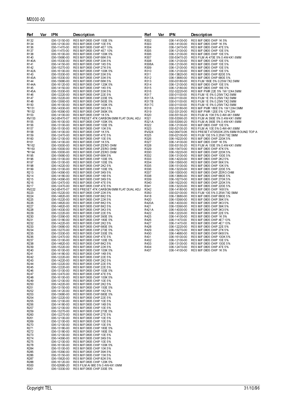 7.3 T2000-300 RF PCB IPN 220-01314-01 7.3.1 136 to 174