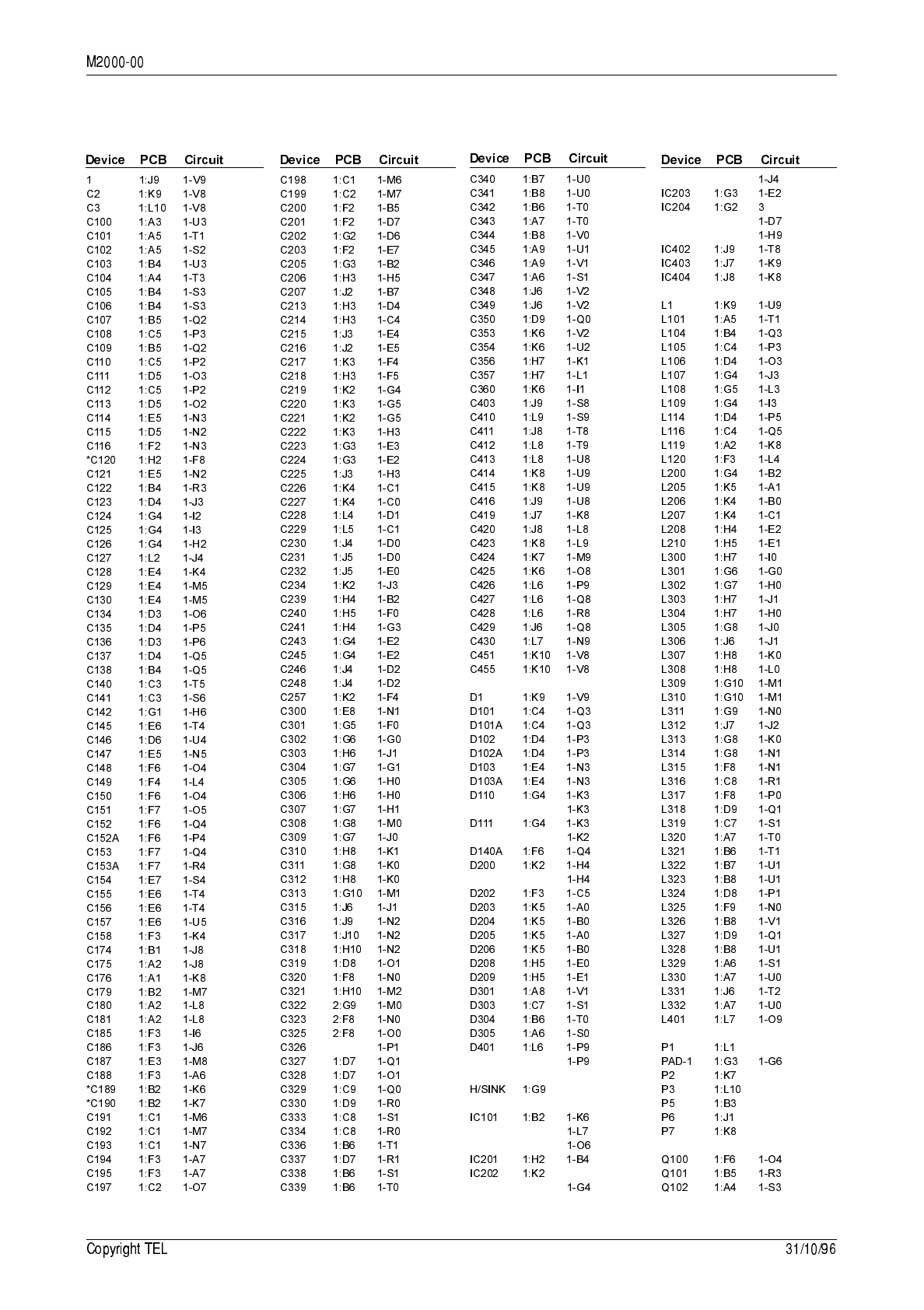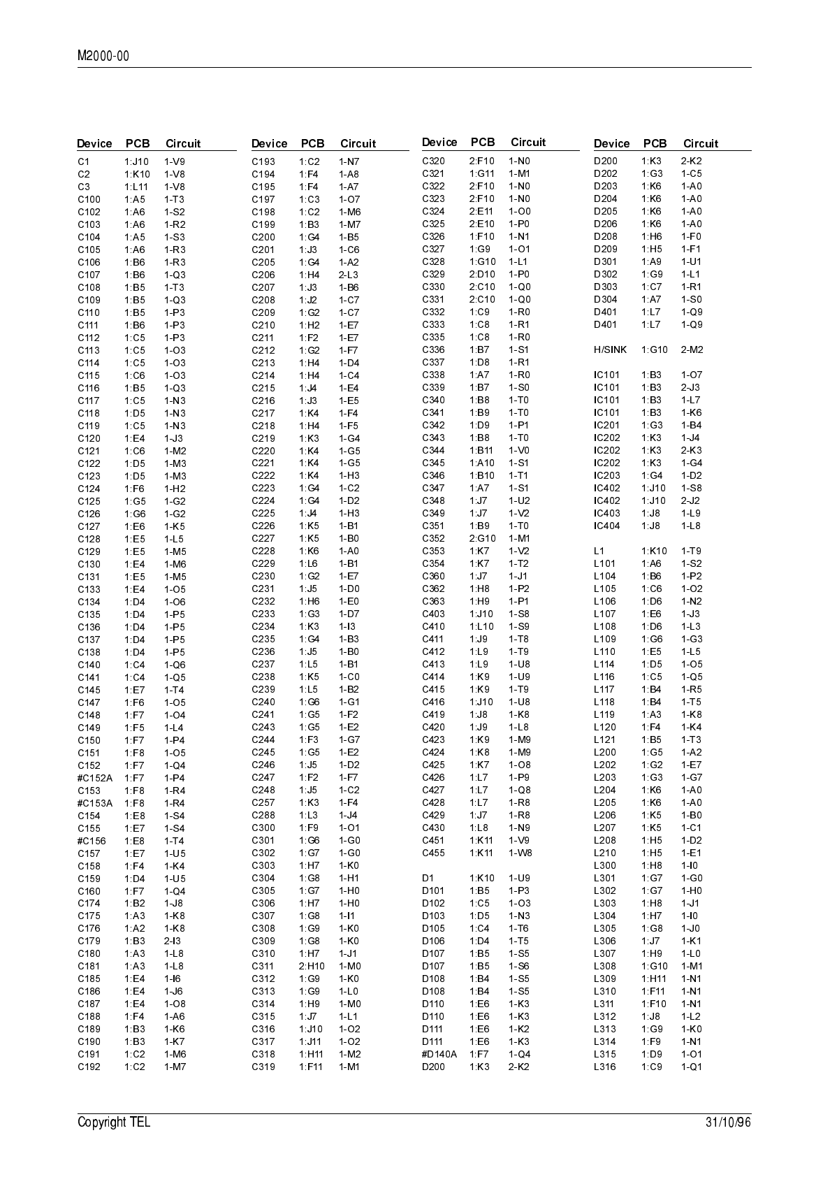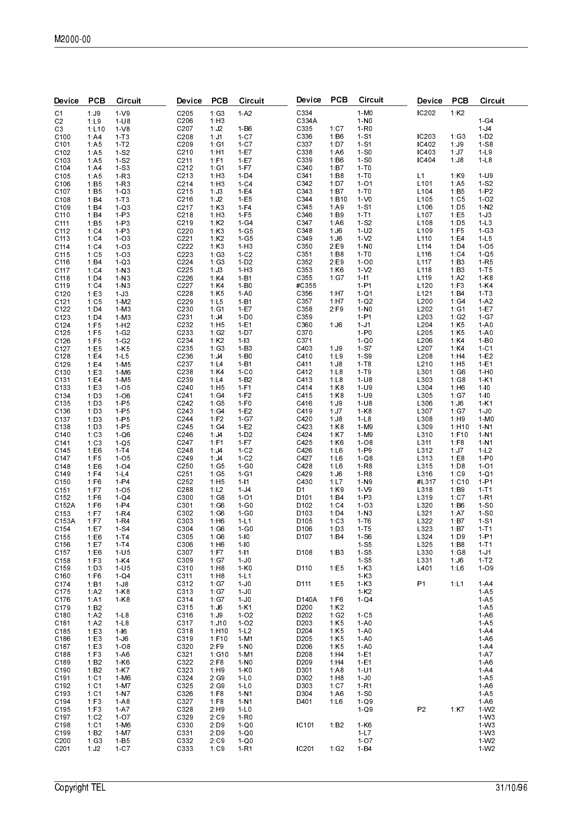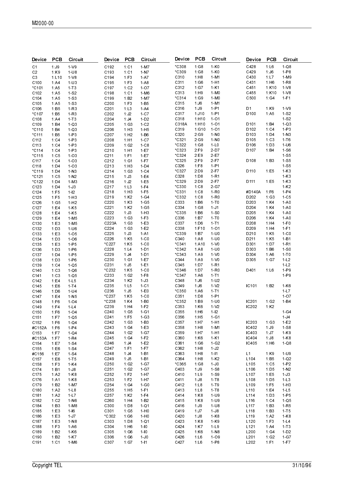 circuit reference (e.g. C201, D106, R121, etc.) and those without (mechanical and miscel-