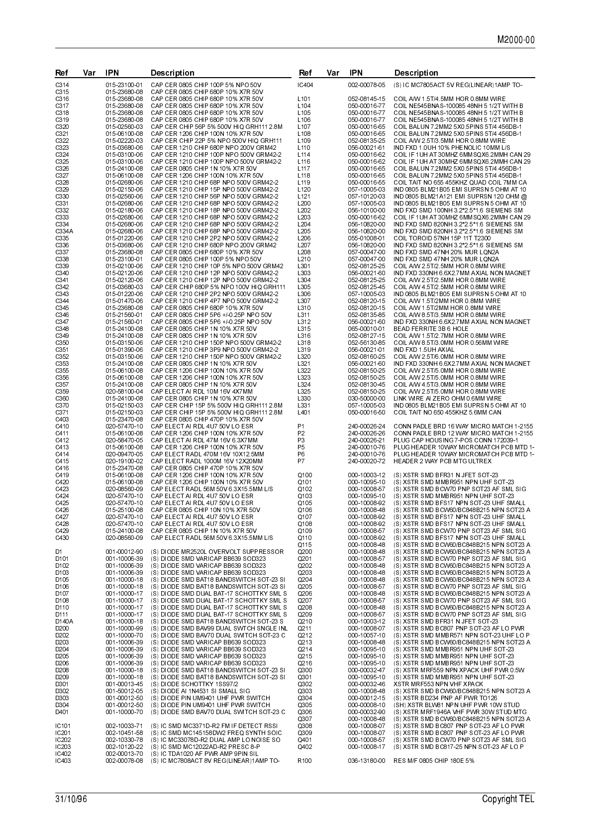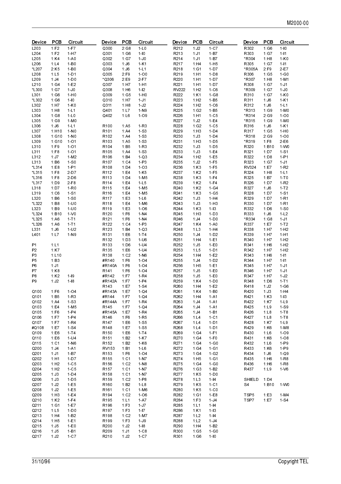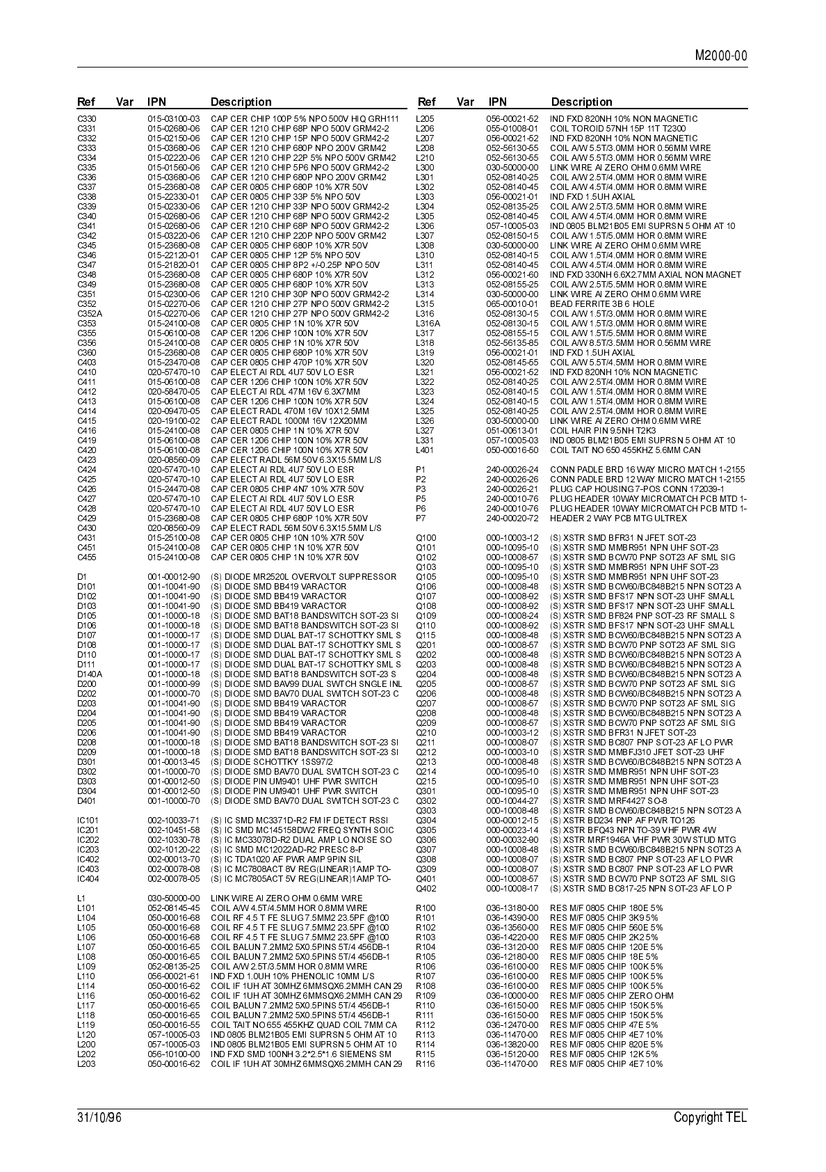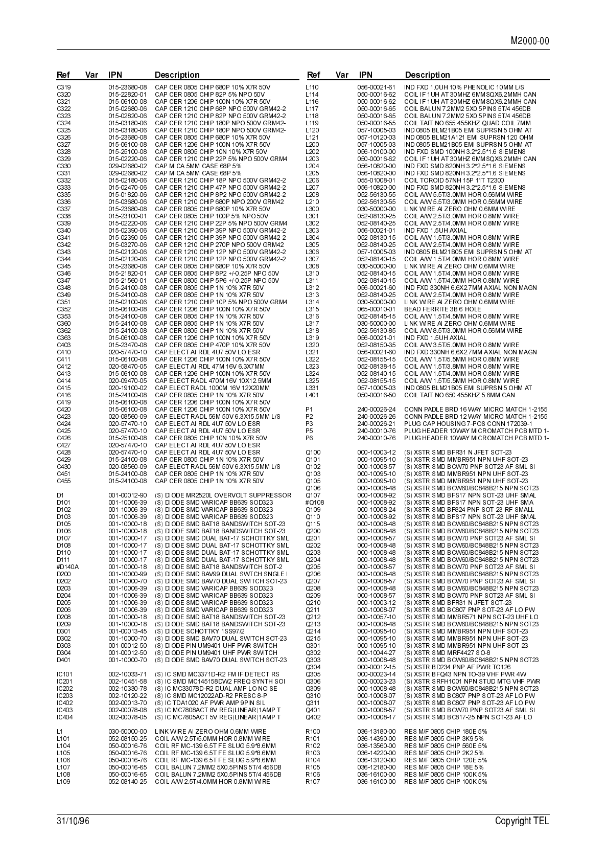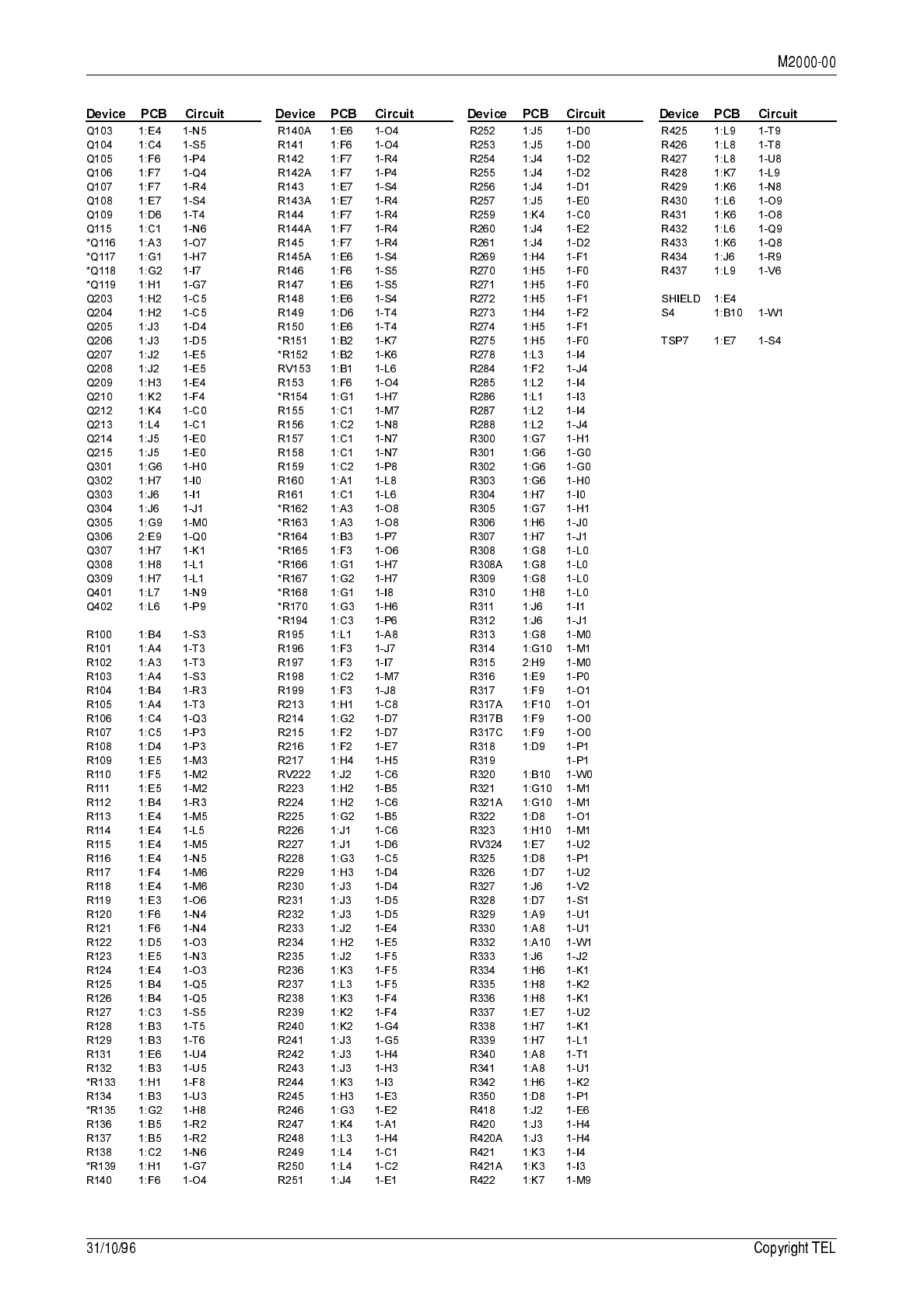 circuit reference (e.g. C201, D106, R121, etc.) and those without (mechanical and miscel-