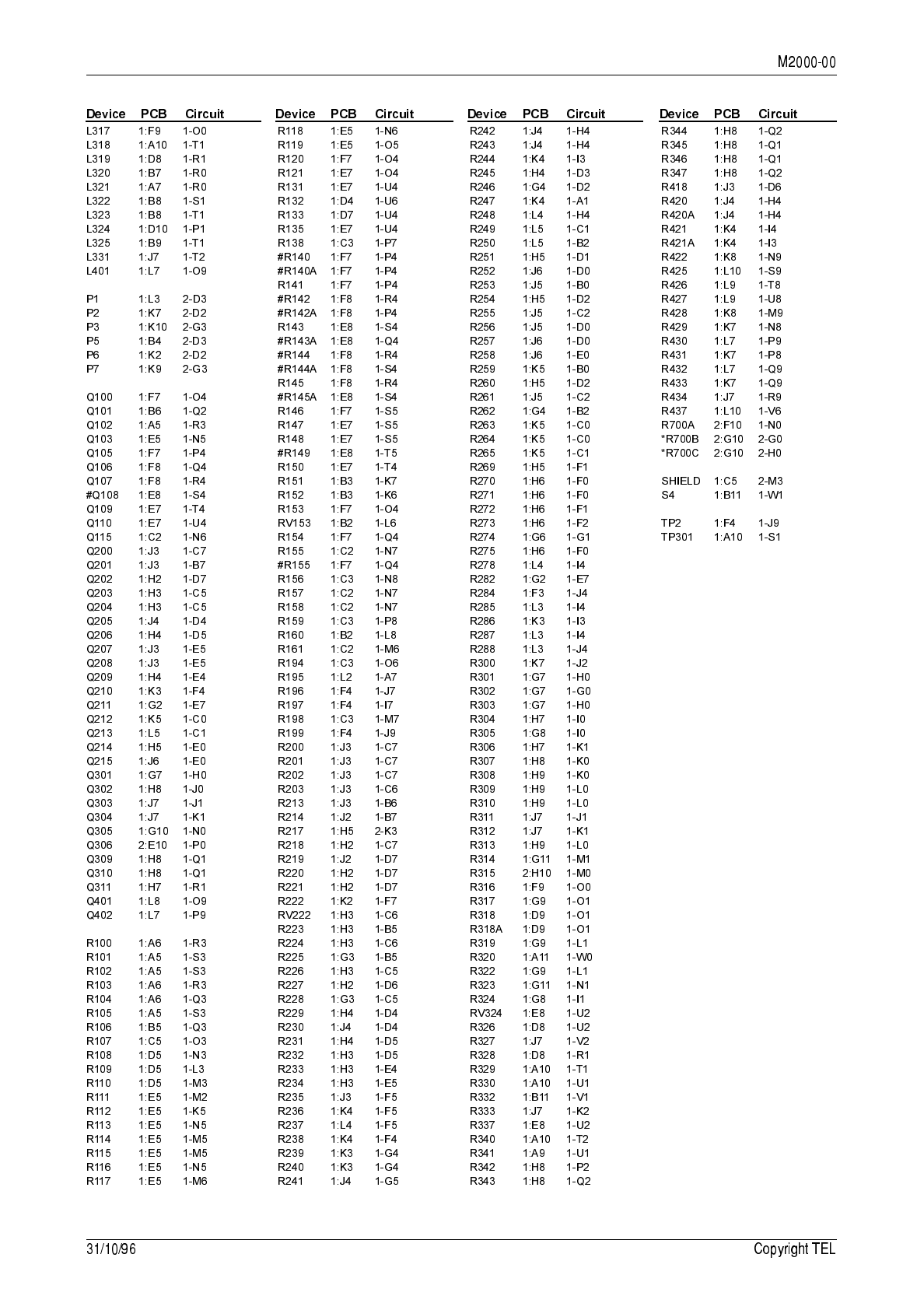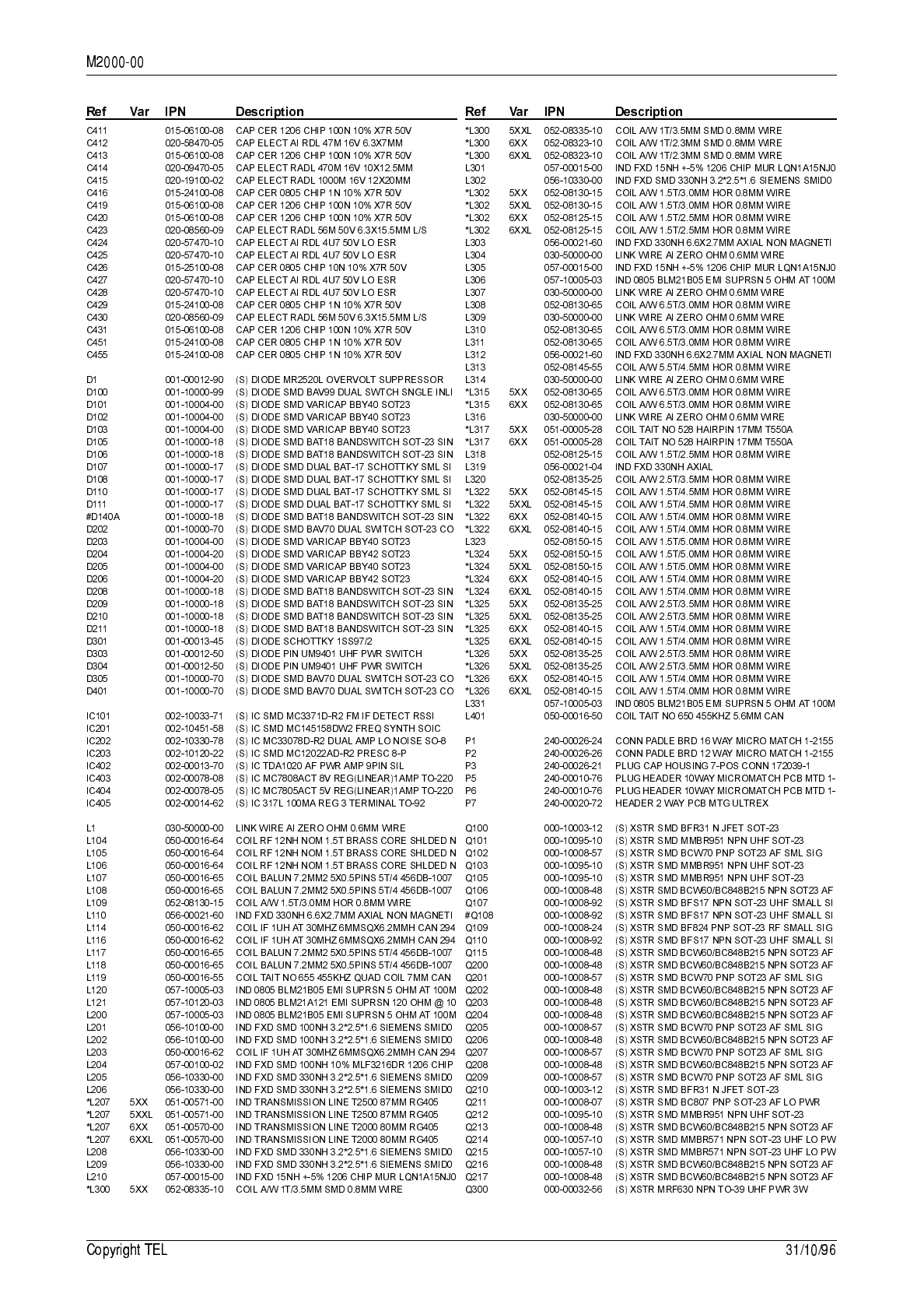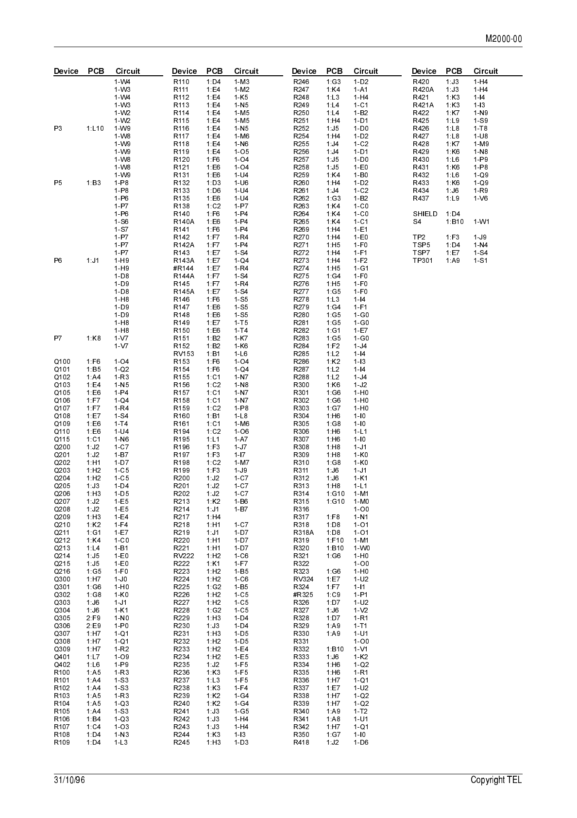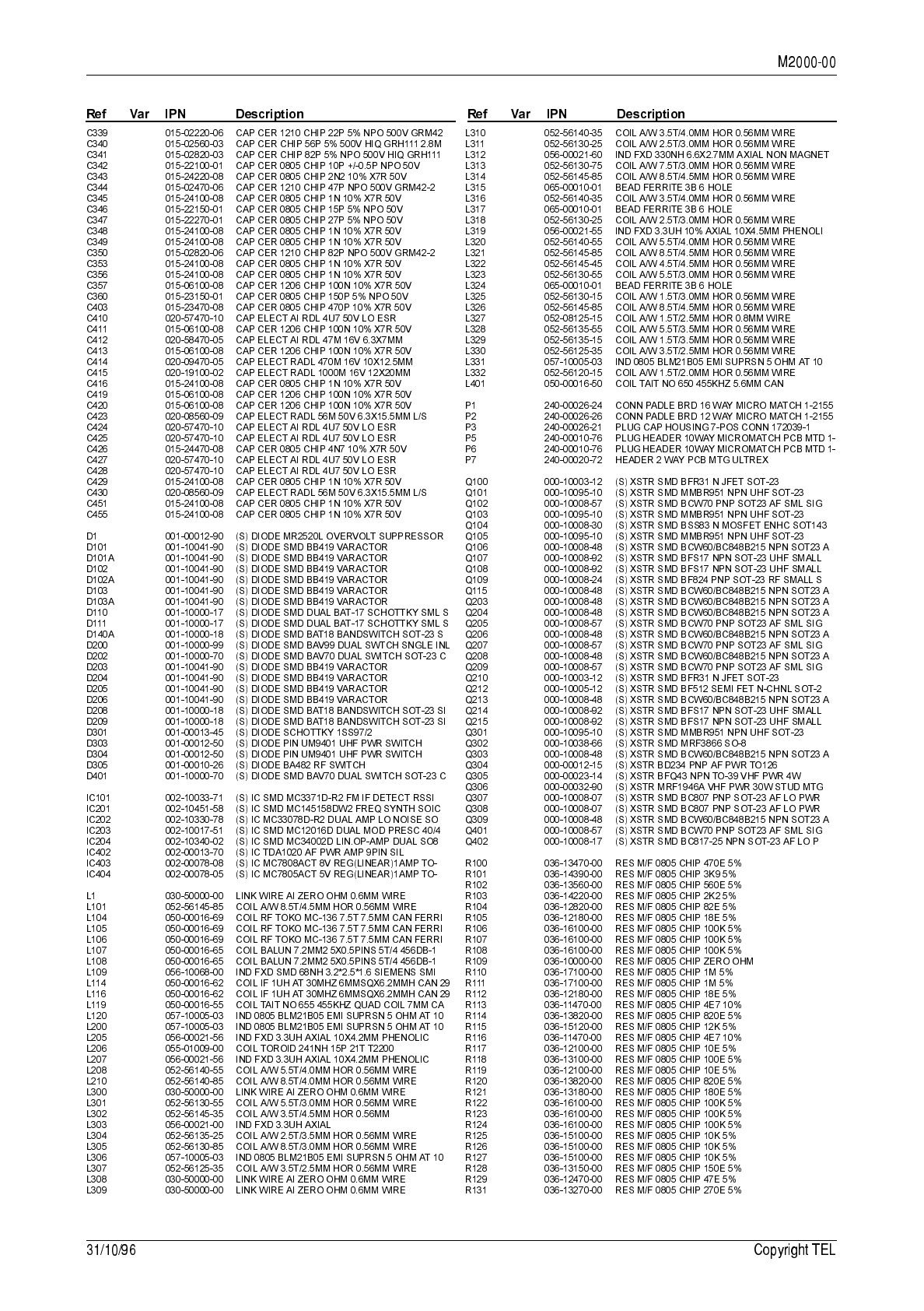 circuit reference (e.g. C201, D106, R121, etc.) and those without (mechanical and miscel-