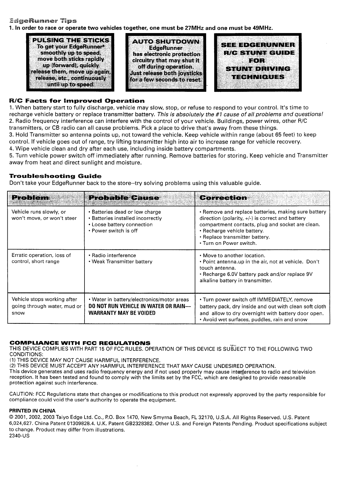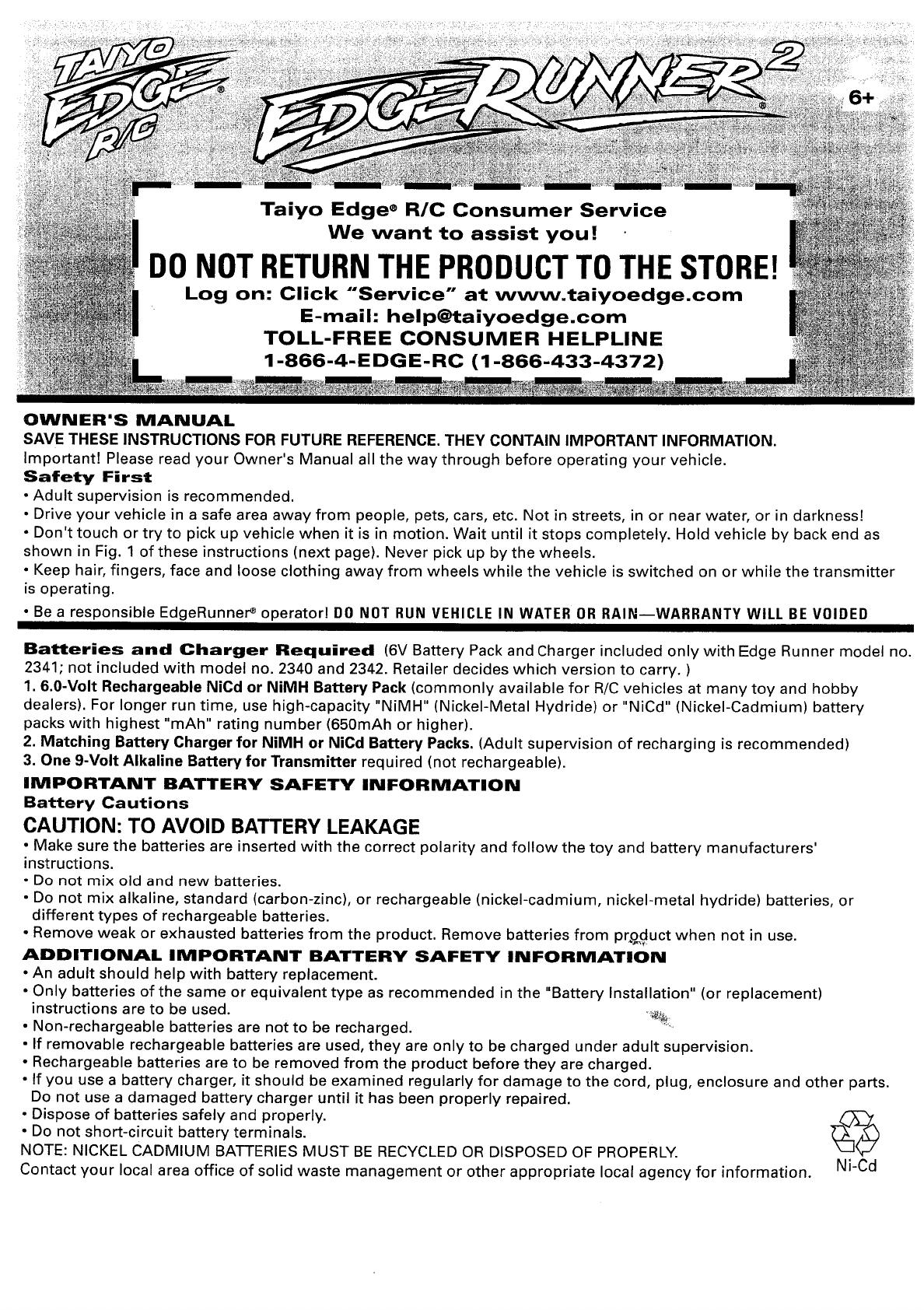 Taiyo Edge 2340-49RX-01 RC Car User Manual
