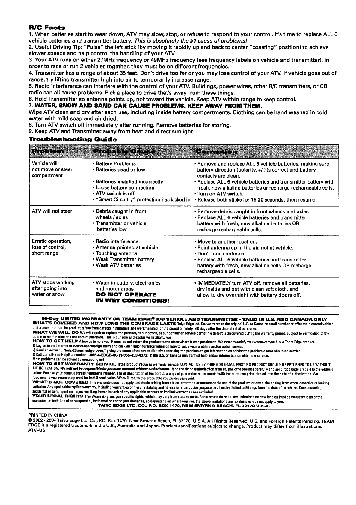 Taiyo Edge 2443-49RX RC Toy User Manual