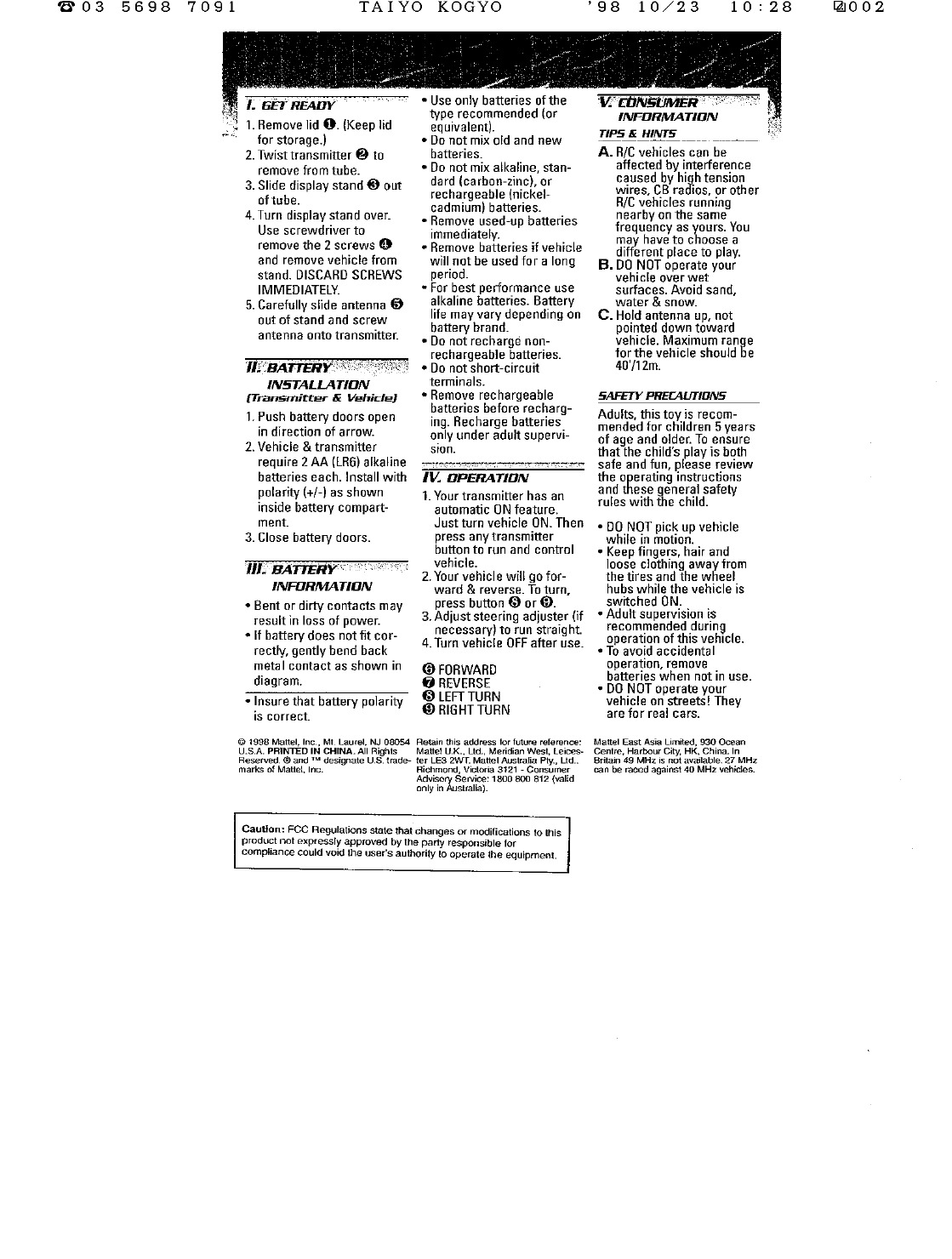 Taiyo Co., Ltd. R/C Transmitter - RADI-CAN Users Manual