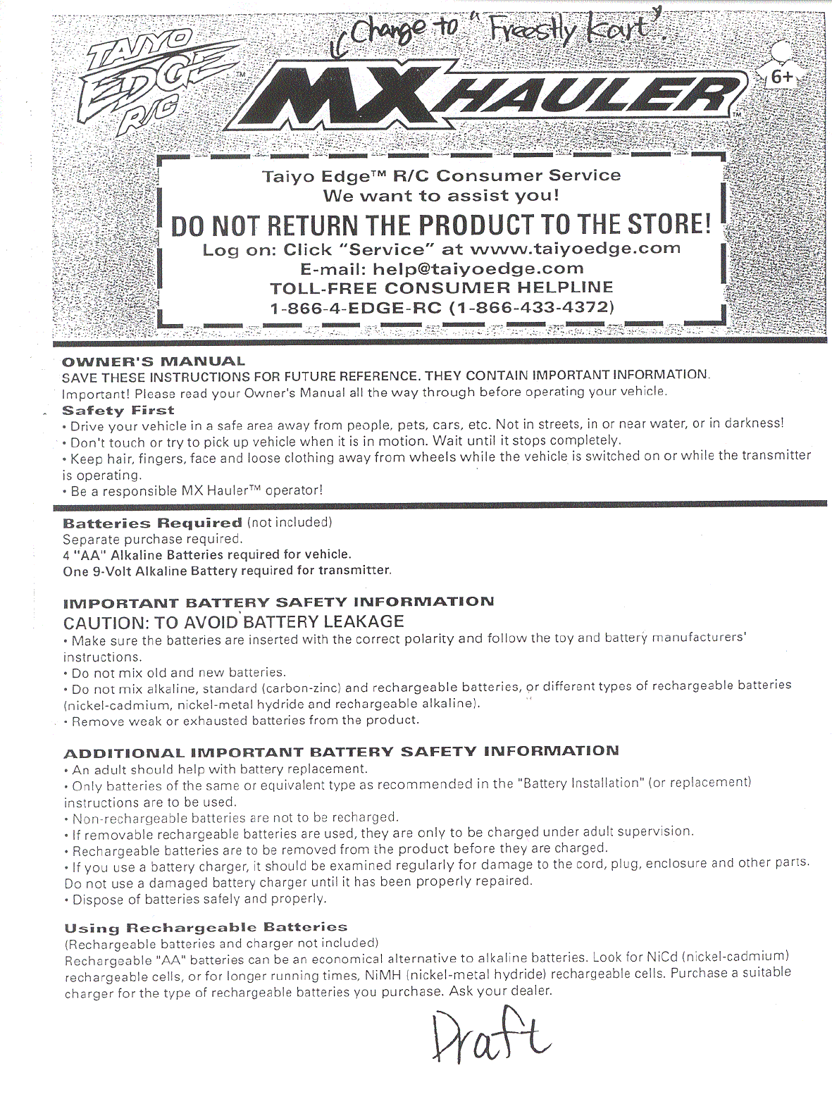 Taiyo A14327 27 MHz Remote Control TX User Manual users manual