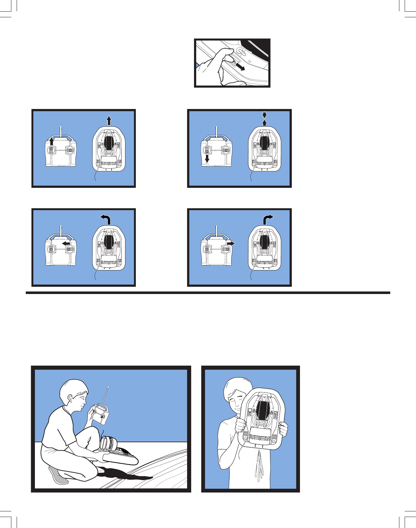 - Point antenna up in the air, not at hovercraft. Don't touch antenna.