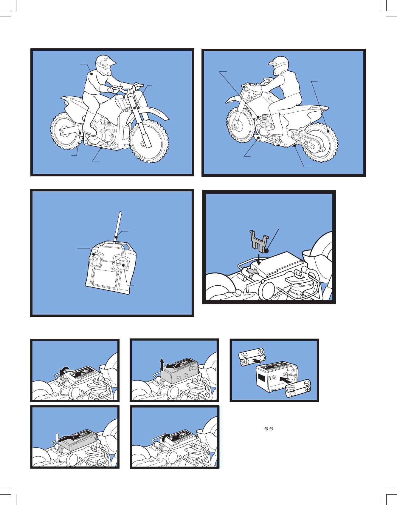 • Keep vehicle and transmitter dry. If they get wet, immediately turn off power switch and remove batteries, wipe off excess moisture, and allow to air