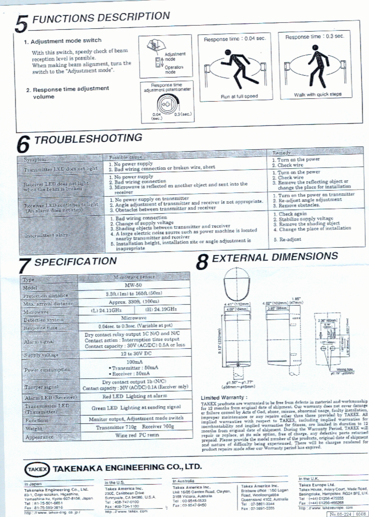 Takex America MW-50 24GHz Microwave Sensor User Manual Part II