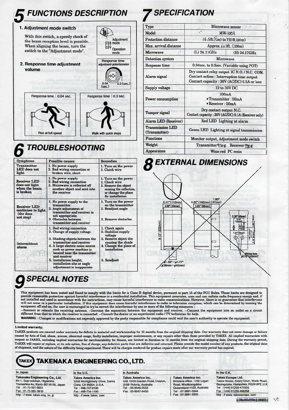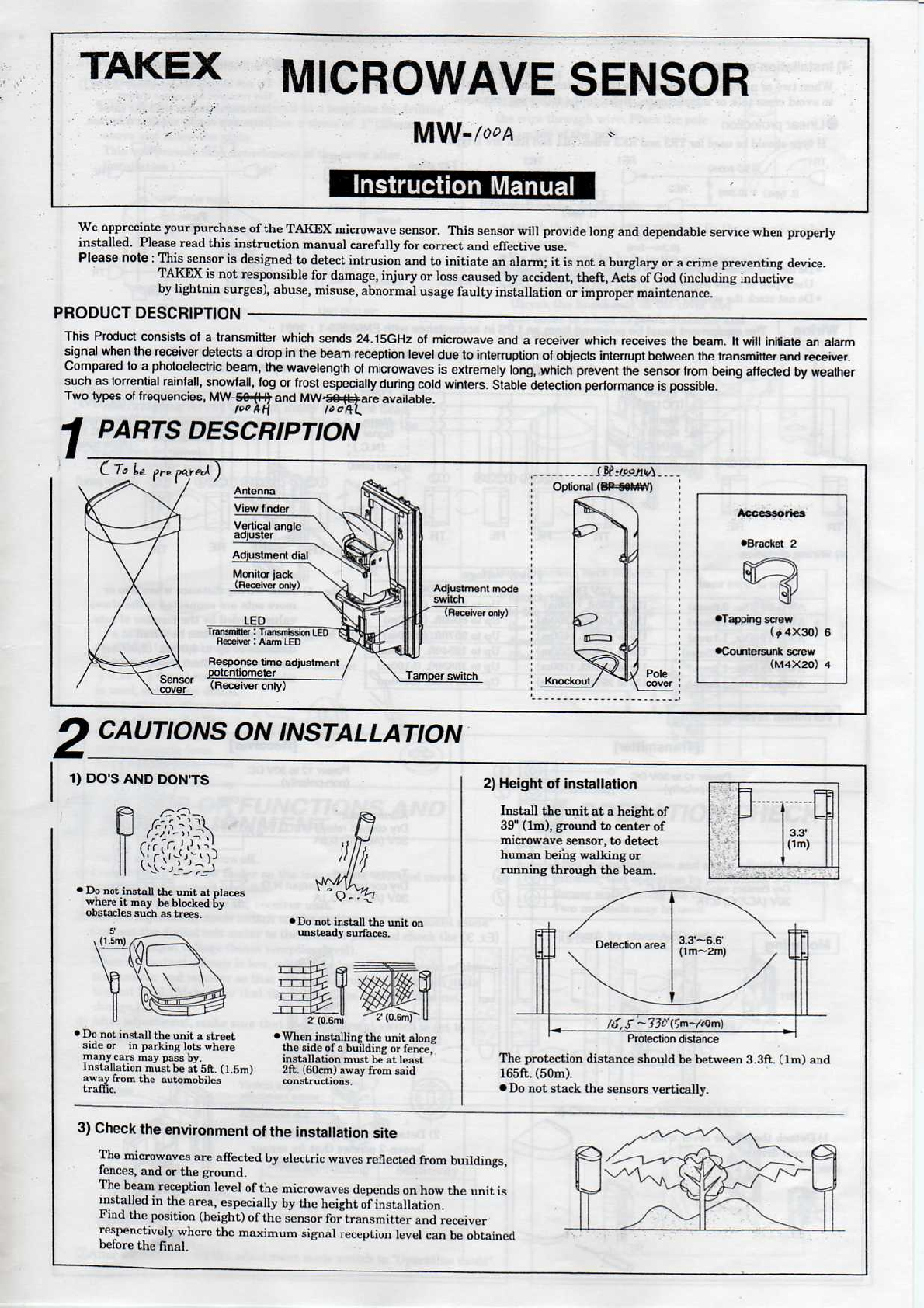 Takex America MW-100 24 GHz Microwave Sensor User Manual