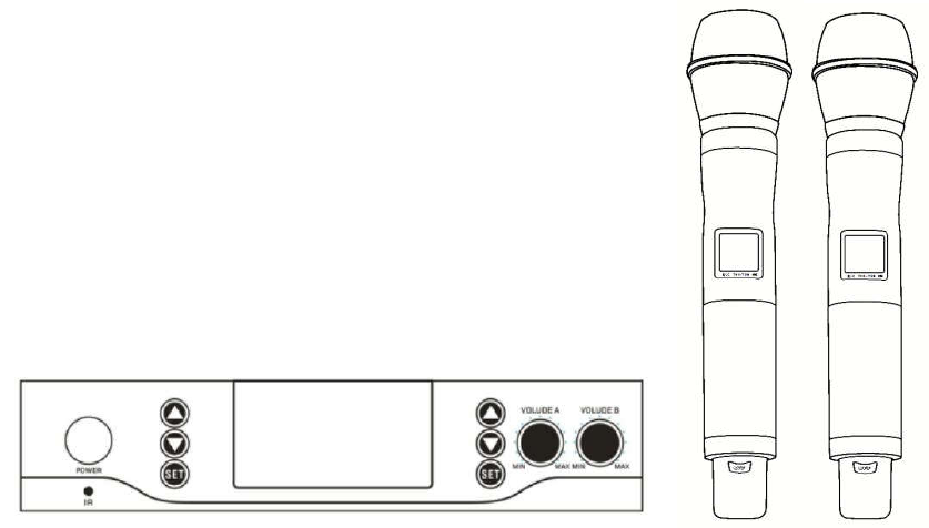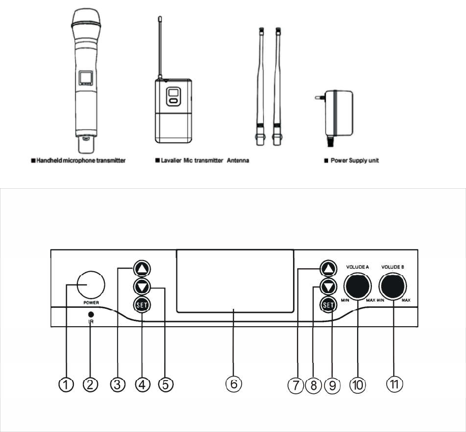 ● 2 handheld microphone transmitters/ Lavalier Mic transmitter