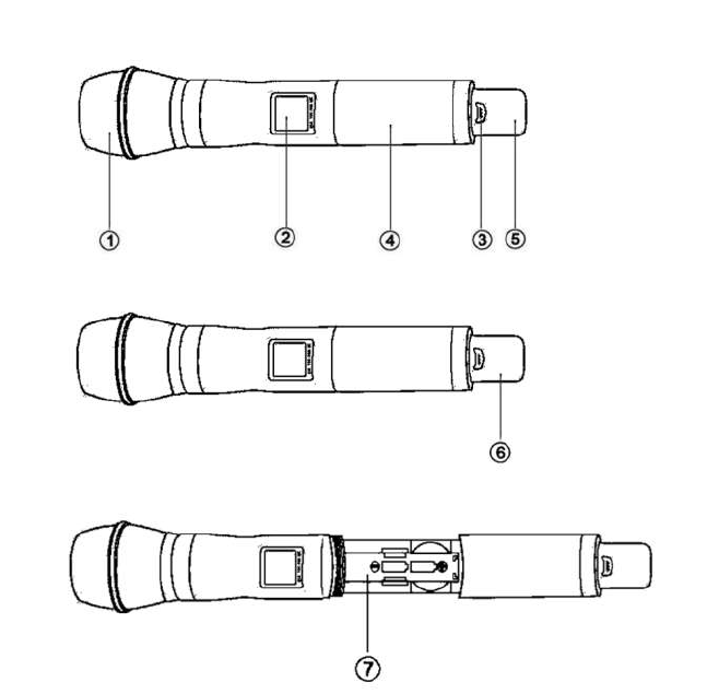 7. After using, turn off transmitter’s power first, and then turn of sound system step by step.