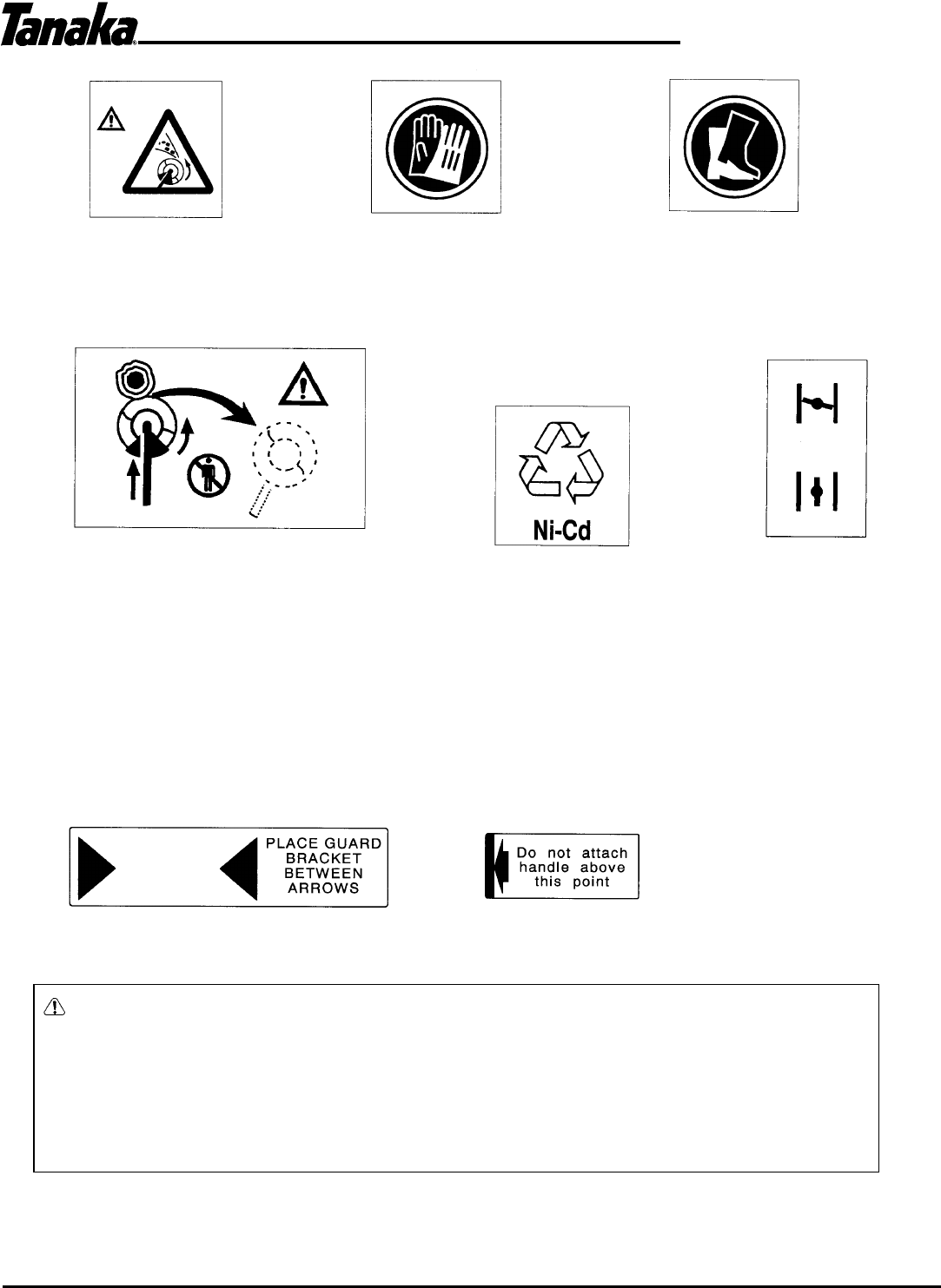 • Never use a metal blade on any brushcutter without barrier bar or bicycle handle configuration and safety strap and