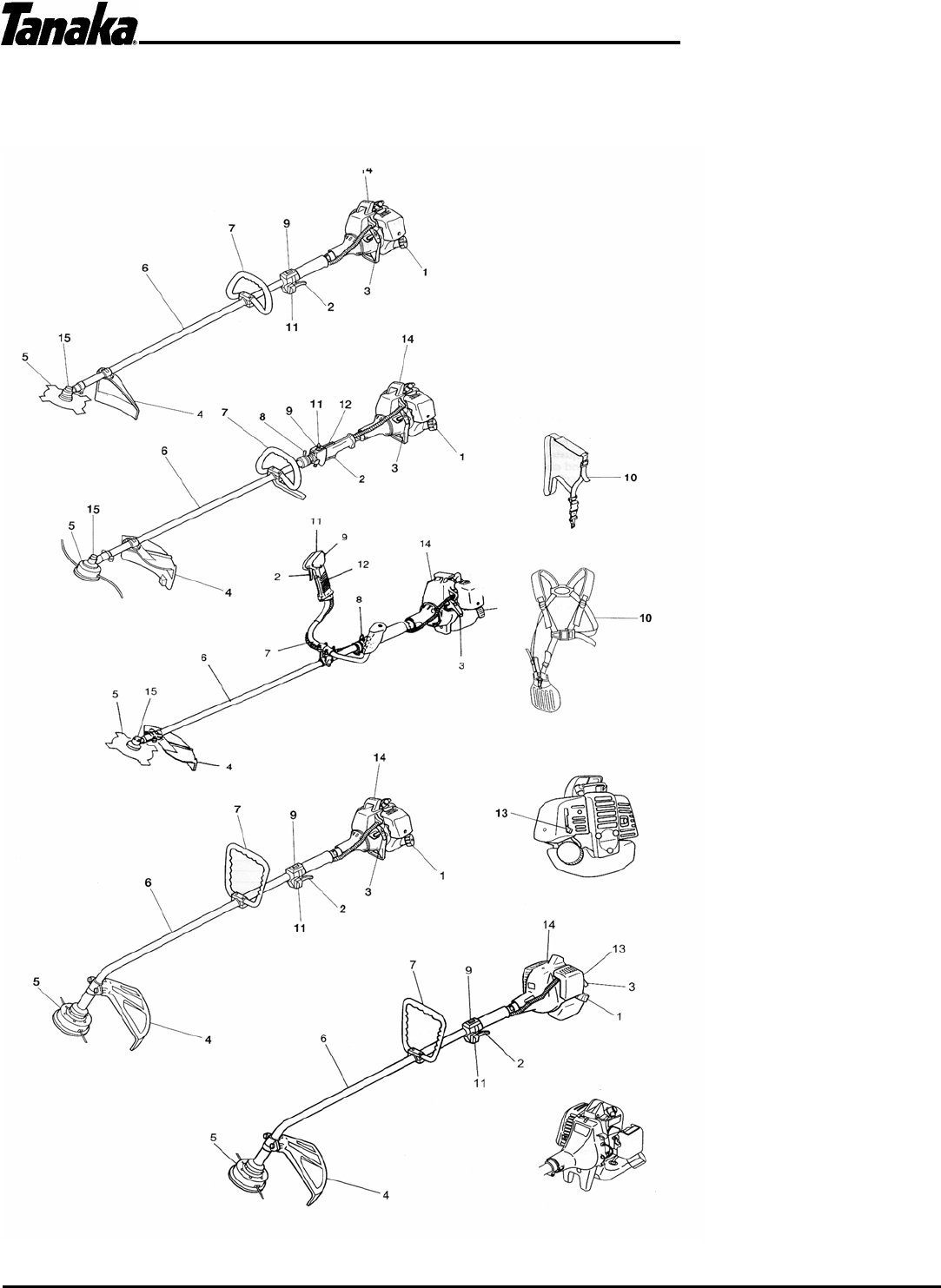 The following Tanaka models are sold as grass trimmers capable of being converted to blade-capable brushcutters:
