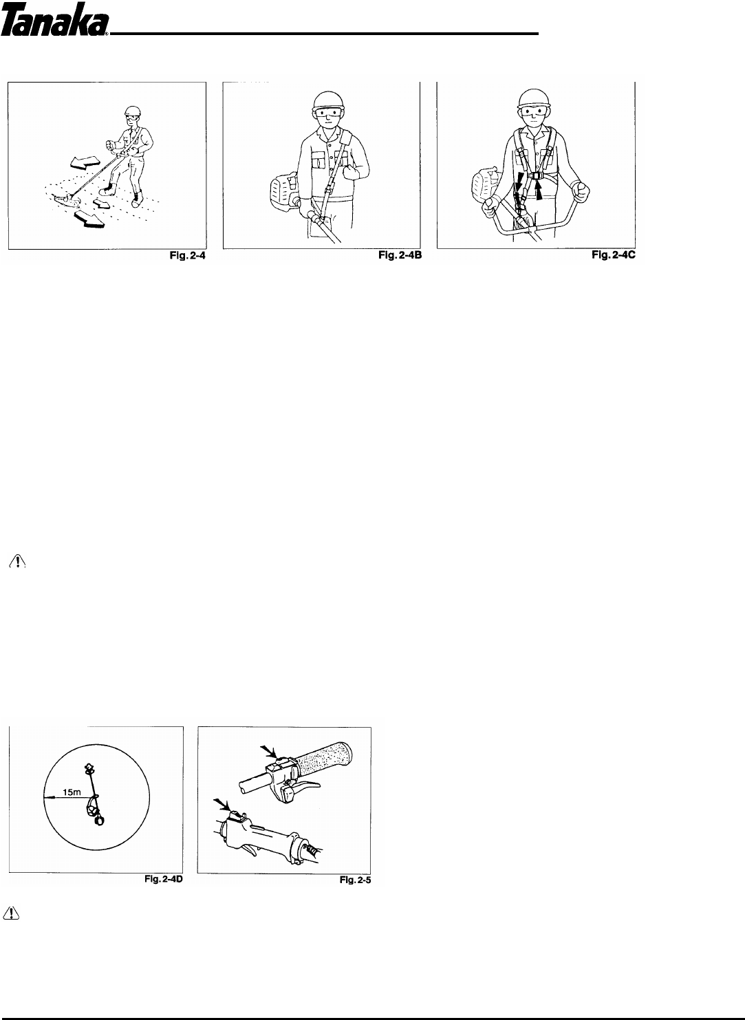 • Never use a metal blade on any brushcutter without barrier bar or bicycle handle configuration and safety strap and