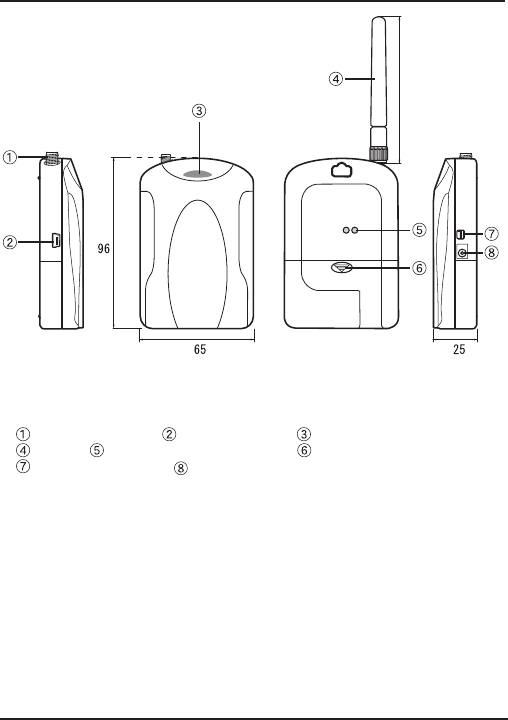 Dimensions H 96mm x W 65mm x D 39mm / Antenna Length : 109mm