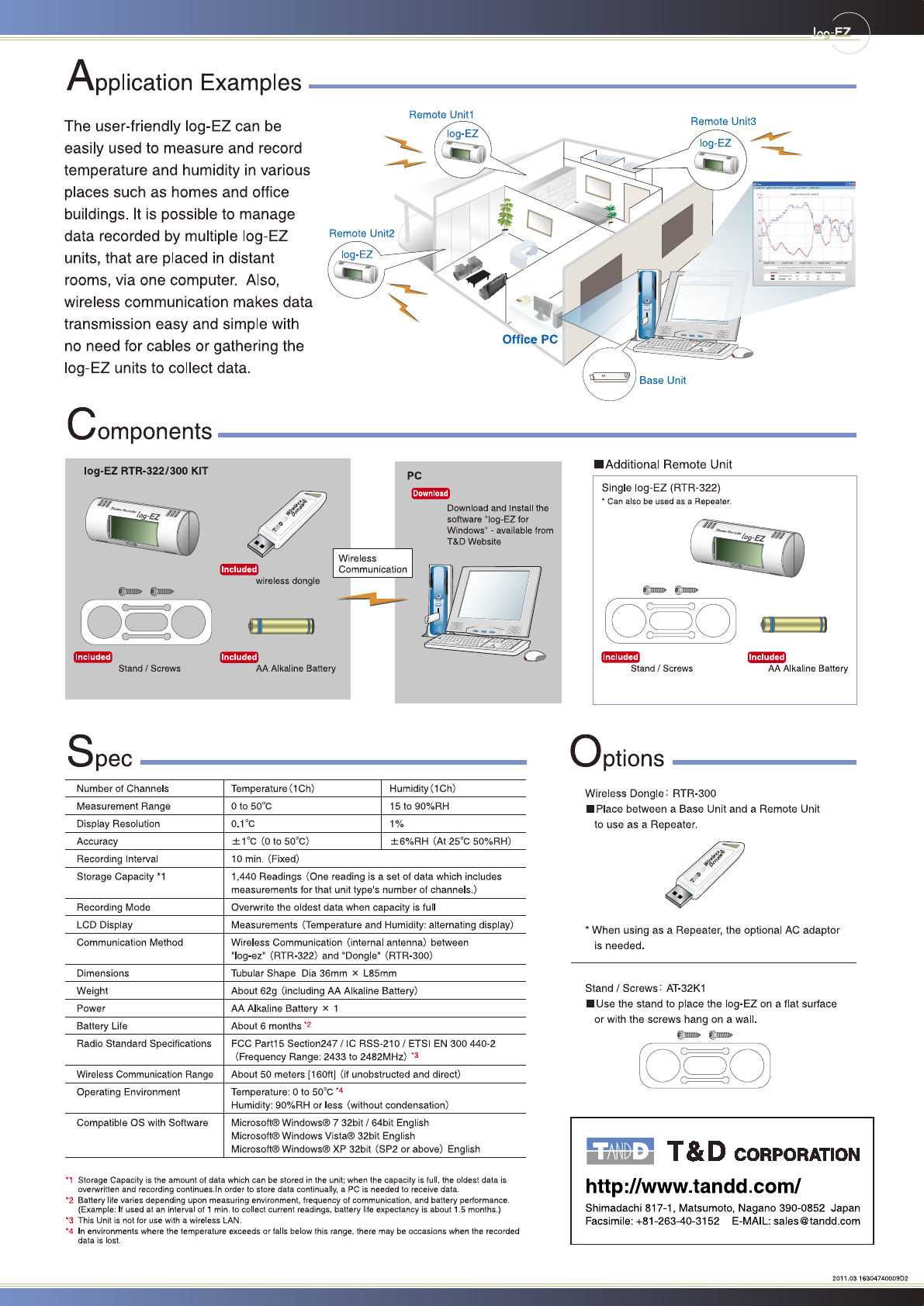 TandD Corporation Wireless Thermo Recorder RTR 322catalog