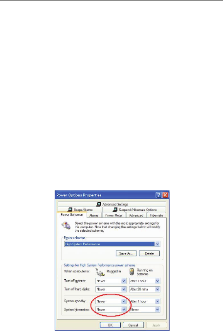 e) Make sure “System Standby:” and “System Hibernates:” under “Plugged