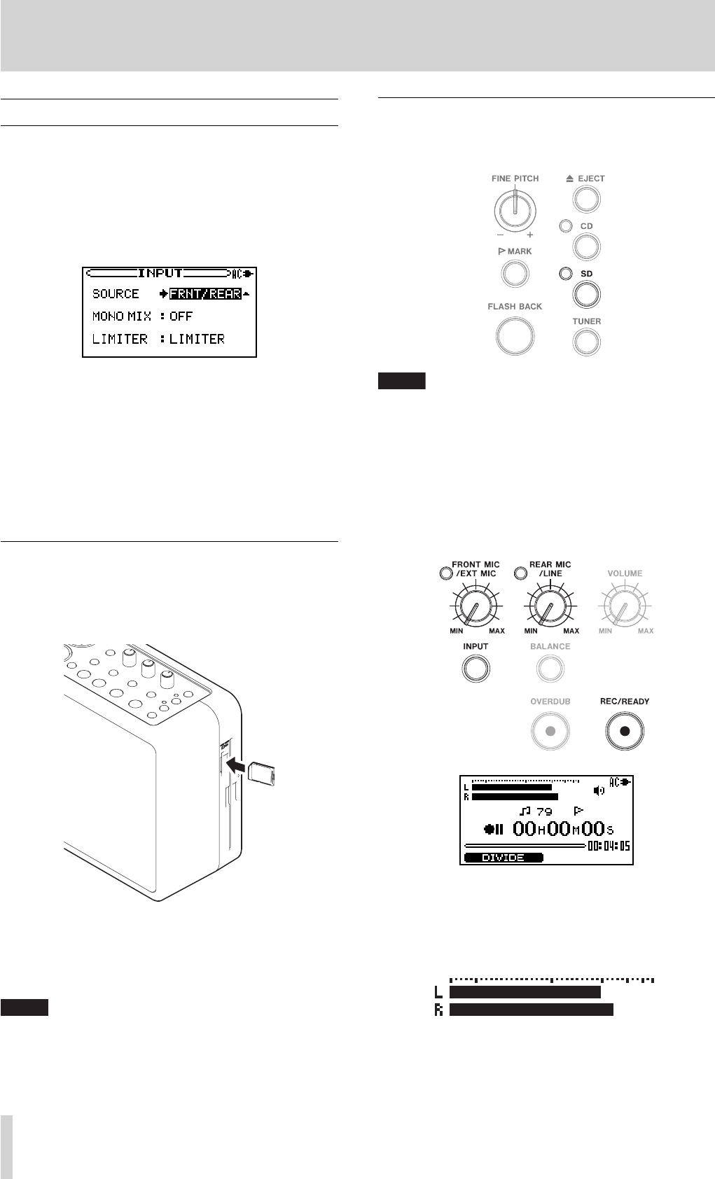(SD record/playback, headphone output mode)