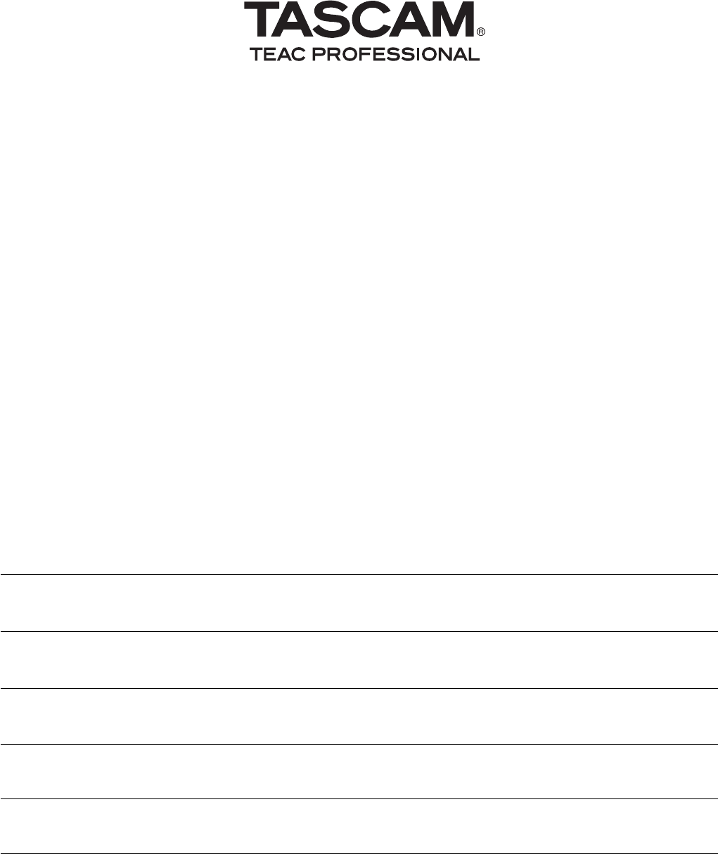 Phone: +1905-890-8008 Facsimile: +1905-890-9888 www.tascam.com