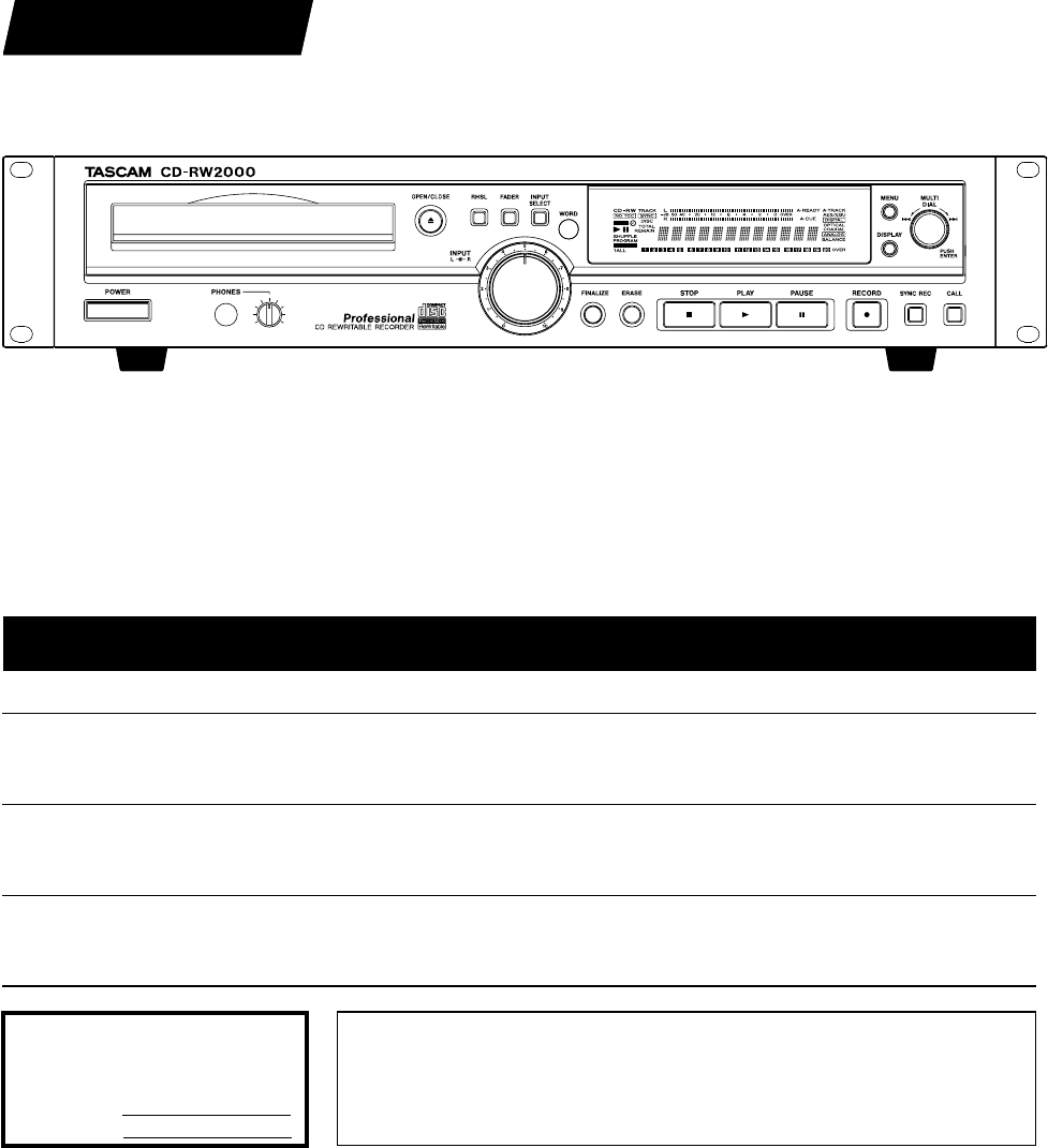 : Tascam Tascam-Cd-Rw2000-Users-Manual-462934 tascam-cd-rw2000-users-manual-462934 tascam pdf