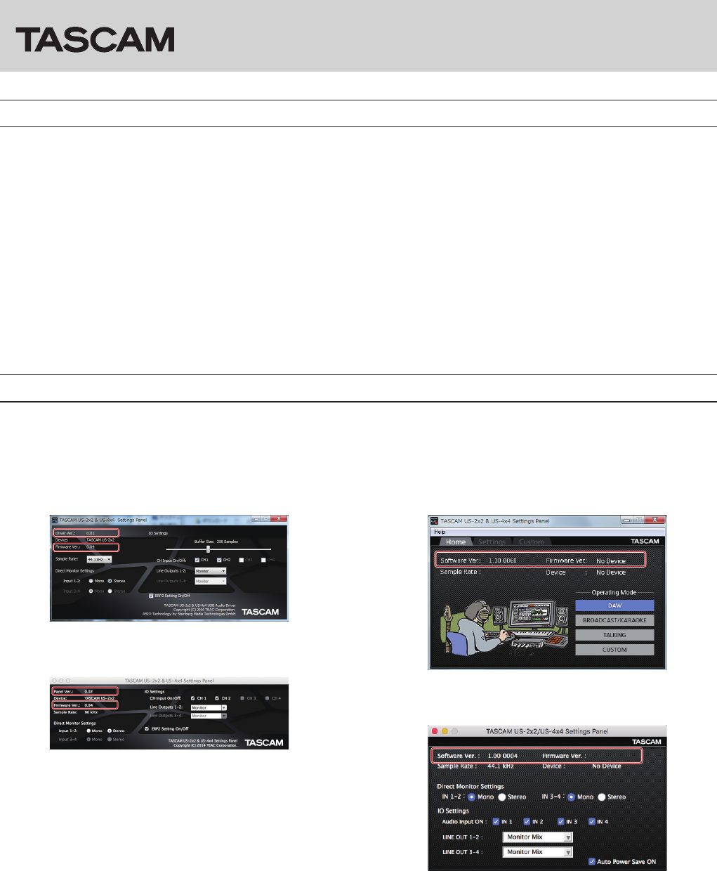 Before beginning to update the software/firmware, check the software/firmware version of the US-2x2 or US-4x4 unit being used.
