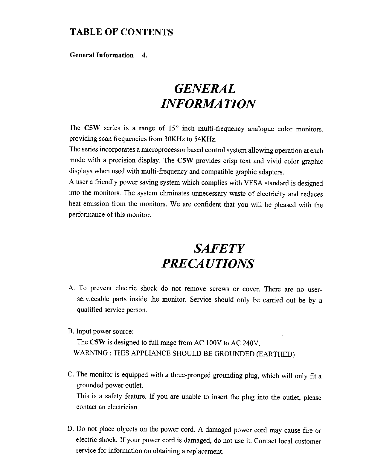 Tatung C5W Color Monitor Model: C5W User Manual 50412