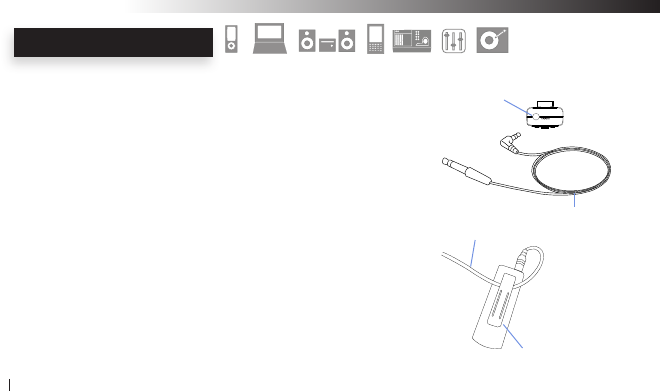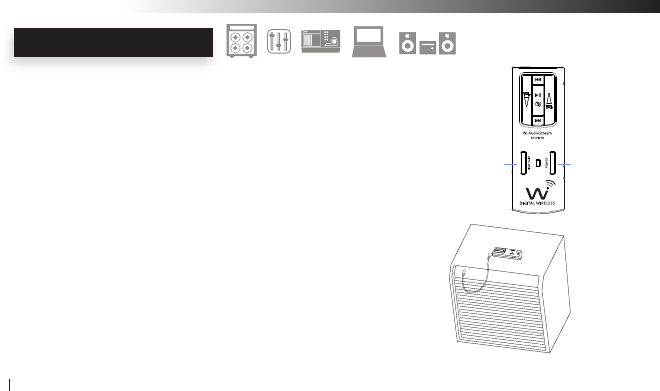 audio source to the dongle size transmitter audio input jacks then connect the dongle size receiver to the