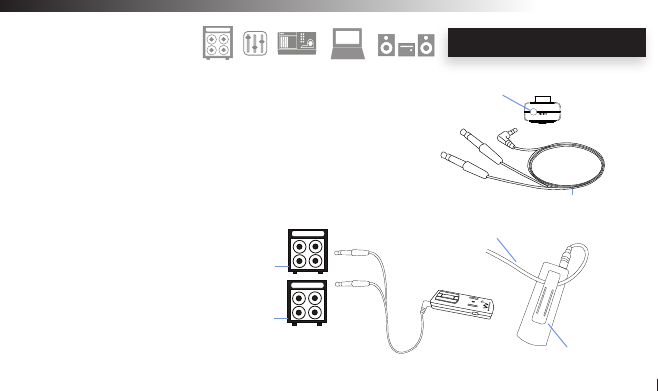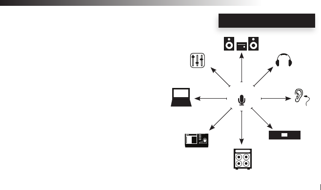 In-ear monitors, Headphones, Mixer, Amplier, Speaker or computer audio input jacks and you are done!...