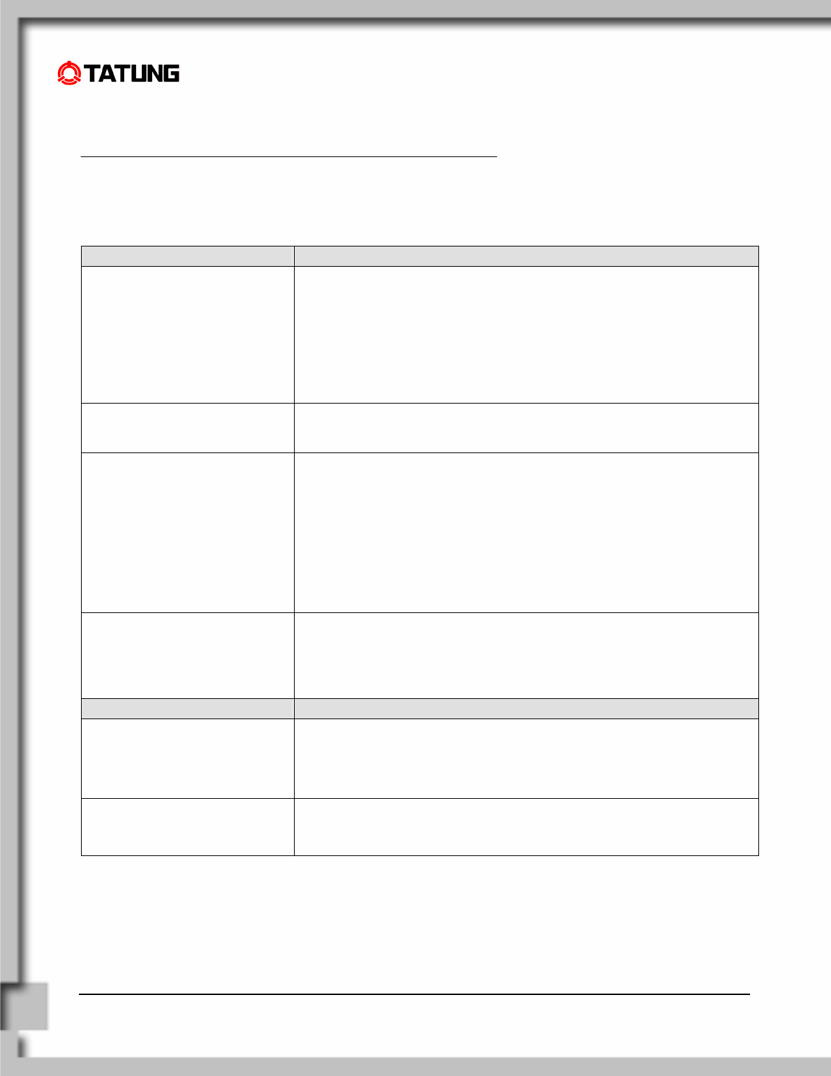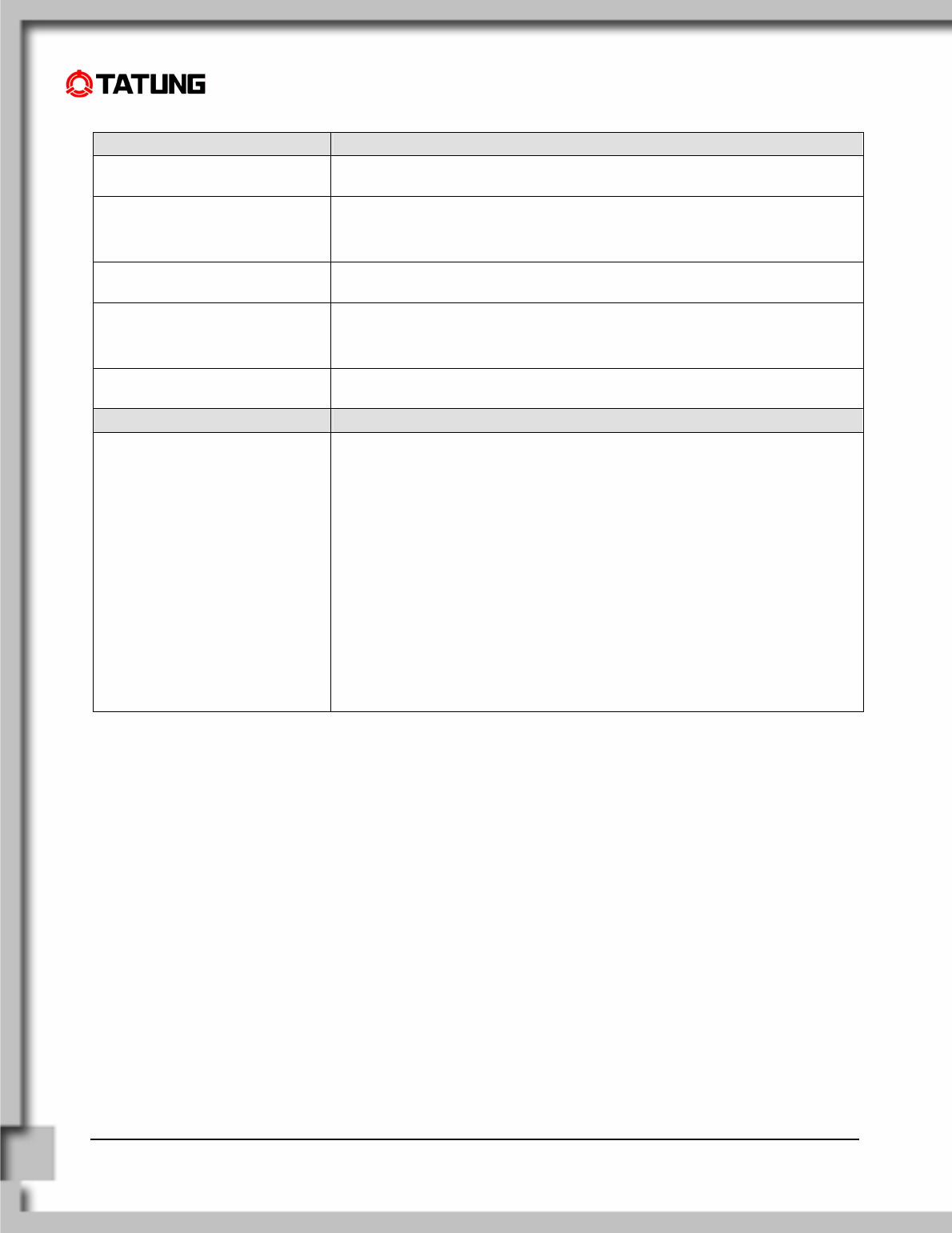 In the interest of continuing product improvement, TATUNG Co. reserves the right to change product specifications
