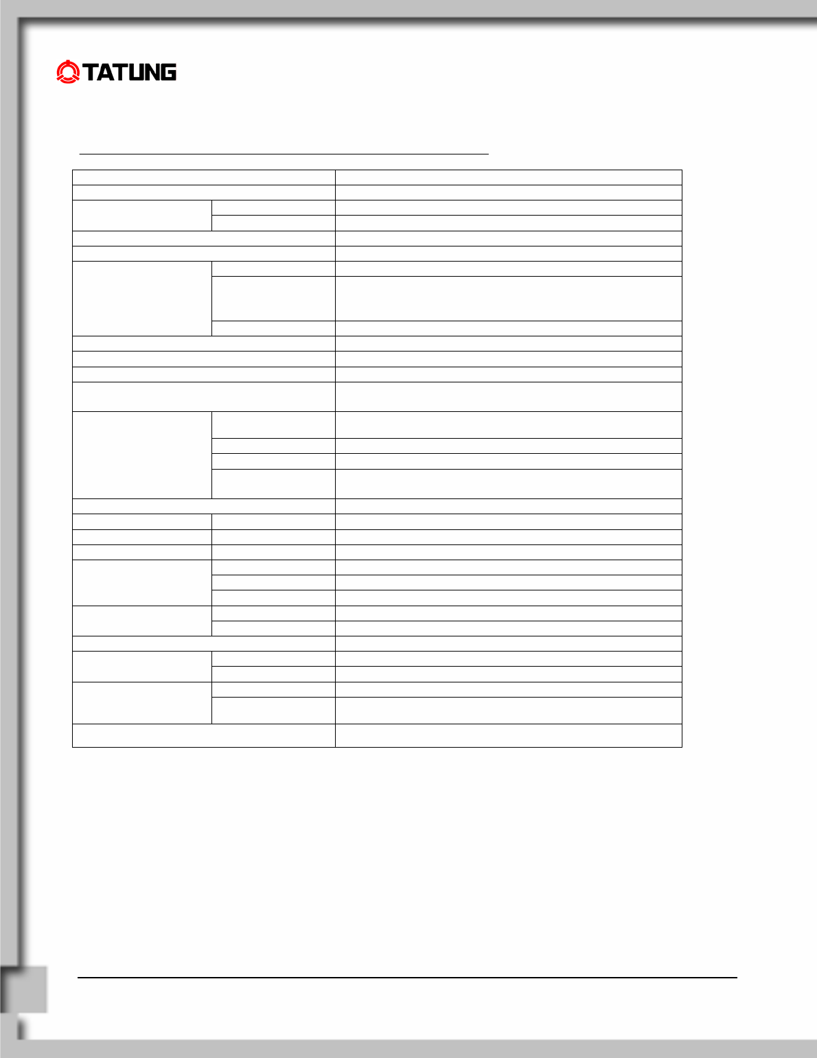 In the interest of continuing product improvement, TATUNG Co. reserves the right to change product specifications