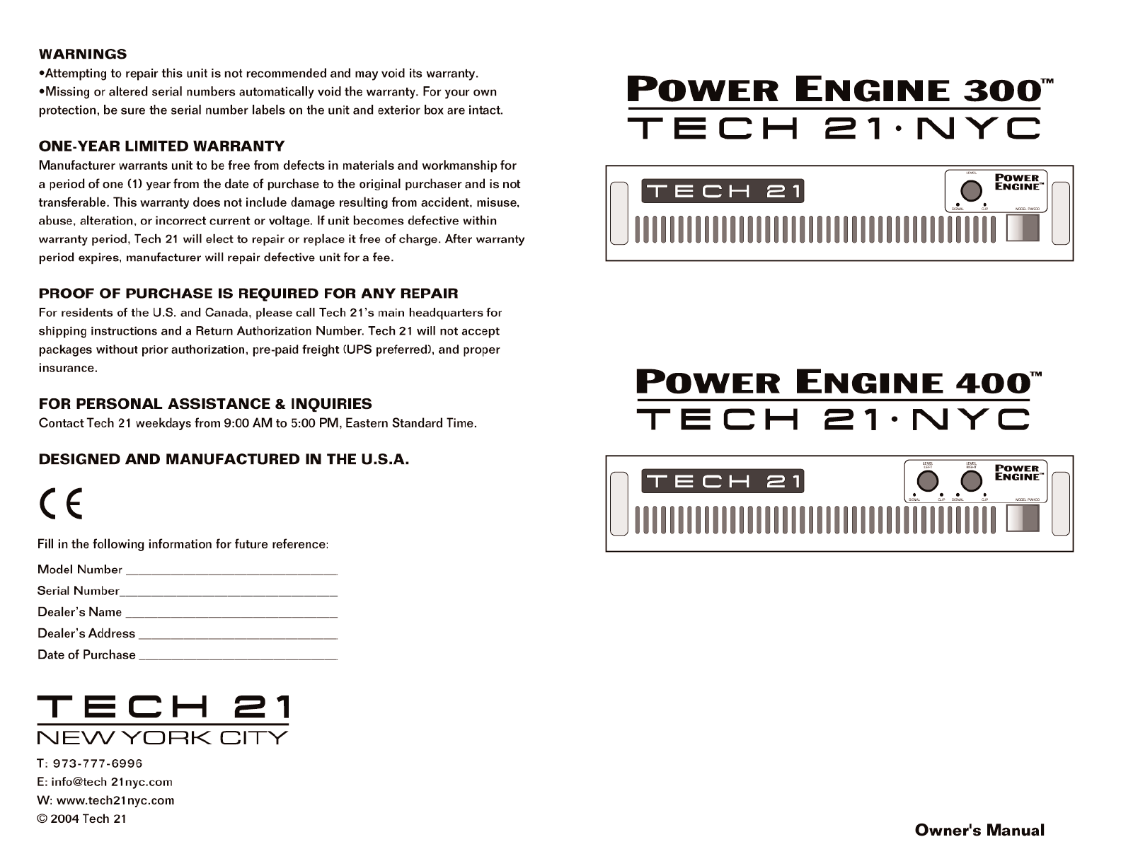 Tech 21 Power Engine 400 Owner's Manual powerengine300_400-om Tech 21 - Power Engine 400 - Owner's Manual